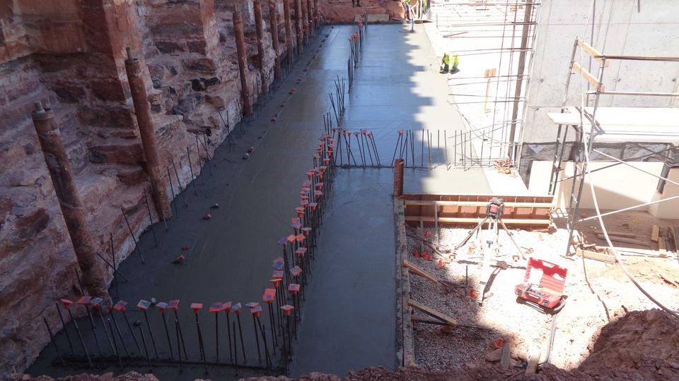 Over the past six months, construction teams have been busy adding a concrete foundation and structural steel girders and beams to the three-level north entrance, which will house administrative offices, men and women’s changing rooms, and a chapel.