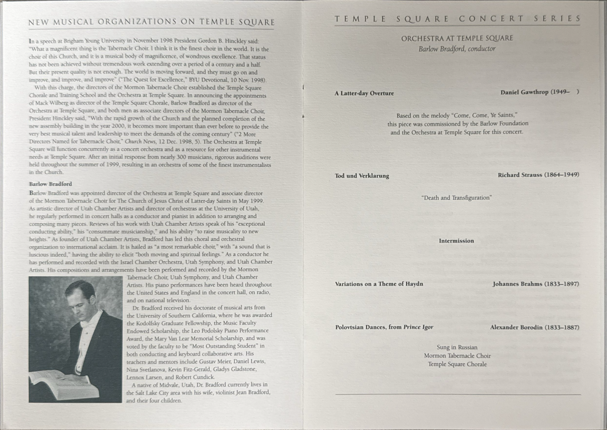 Director Wilberg said its impact on the Choir has been powerful. The orchestra added a new and significant dimension in sound and repertoire to the Choir’s broadcasts, concerts and performances.