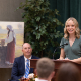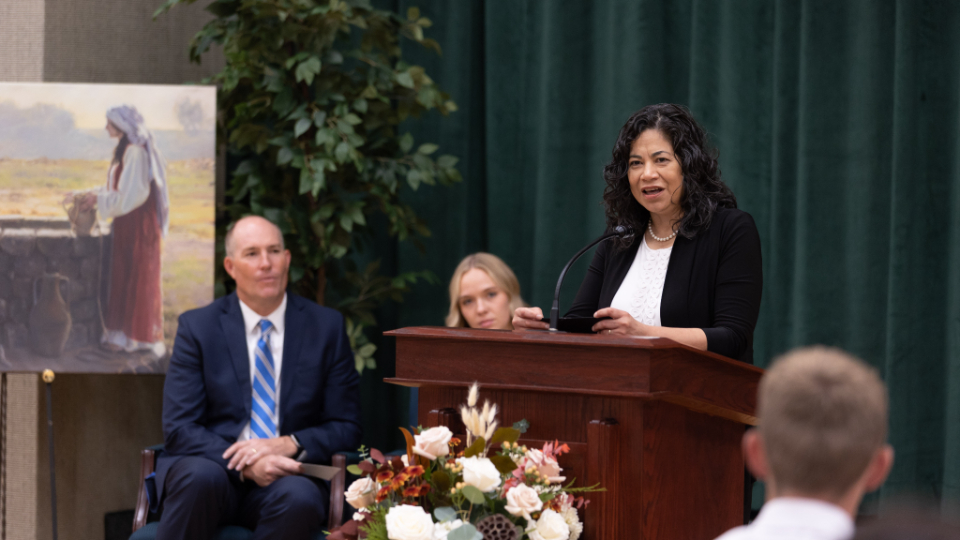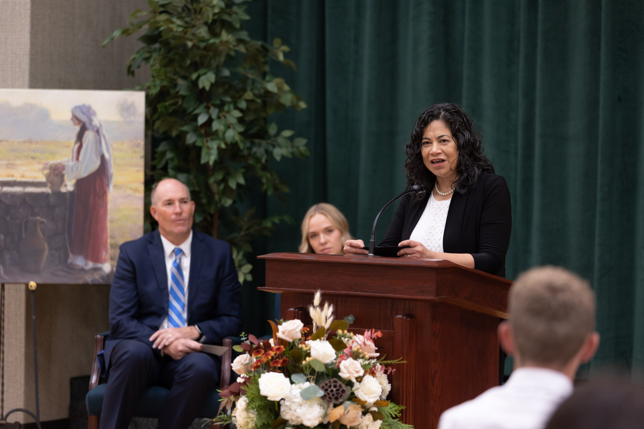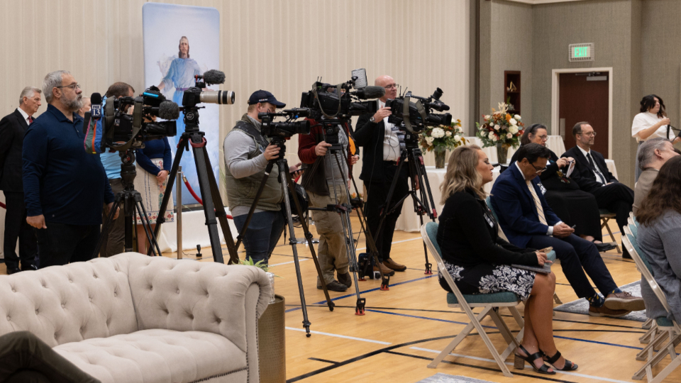 Reyna I. Aburto, a member of the Orem Utah Temple open house committee and a former counselor in the Relief Society general presidency, conducted Monday’s news conference.