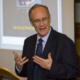 Professor John S. Tanner, Brigham Young University’s academic vice president, explored the effect of the King James Bible in America. “It’s had a magisterial impact and influence on our culture,” he said. Professor Tanner reviewed the book’s role in the lives of four prominent figures in United States history: John Winthrop (“the Pilgrim”), Joseph Smith (“the Prophet”), Abraham Lincoln (“the President”) and Martin Luther King (“the Preacher”).