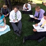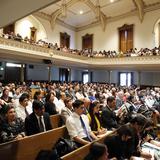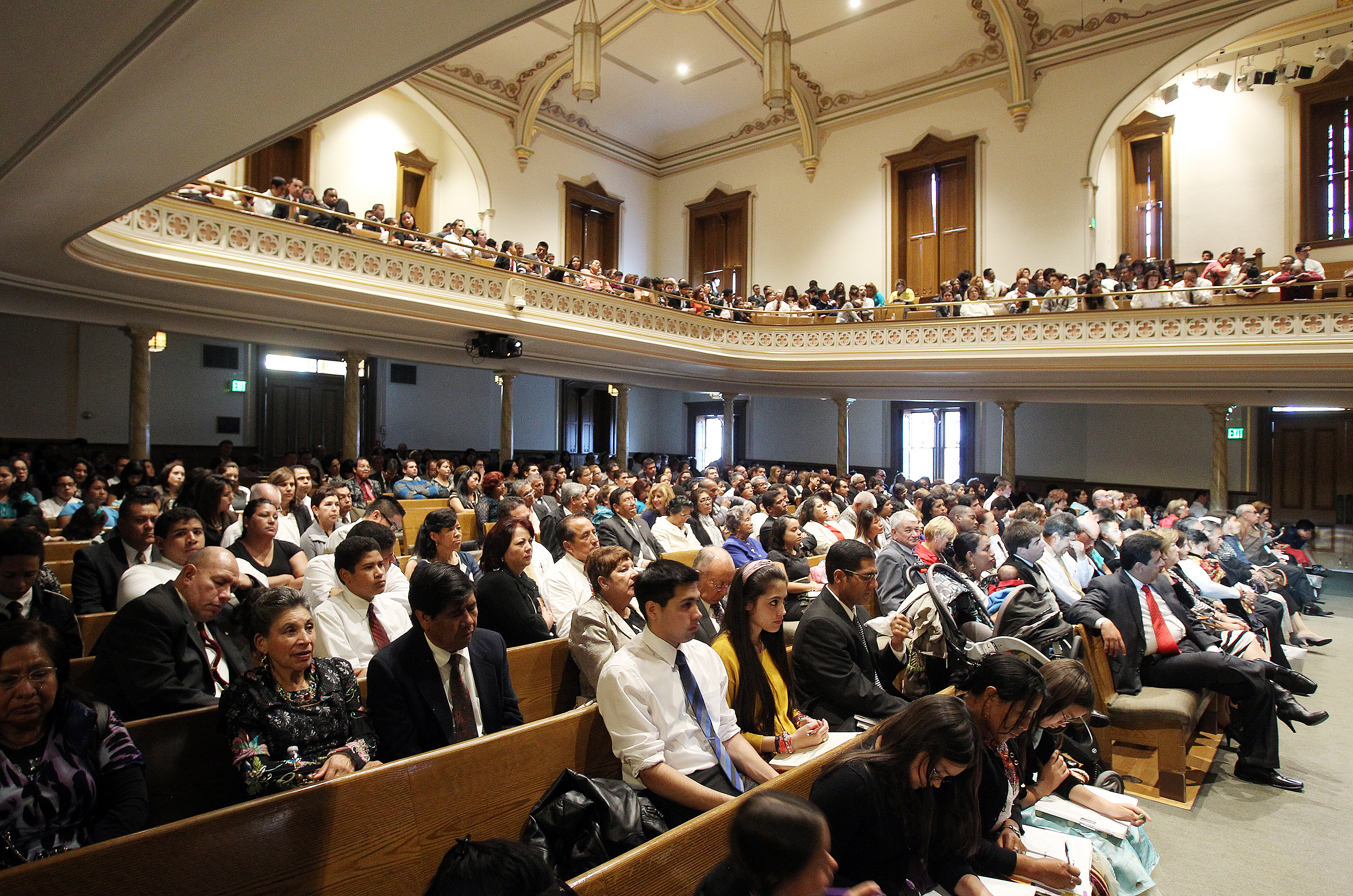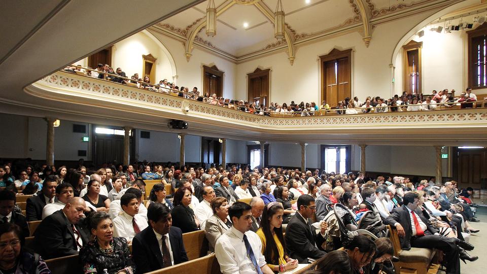 This group listens to conference being translated into Spanish in the Assembly Hall on Temple Square.