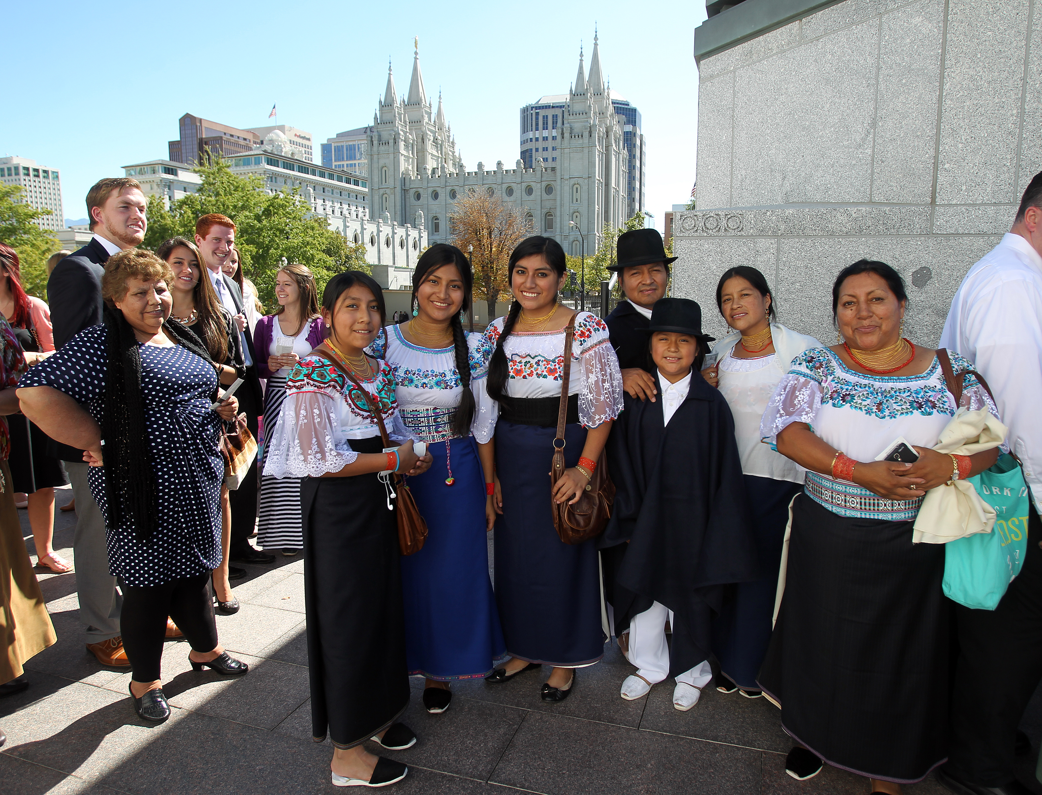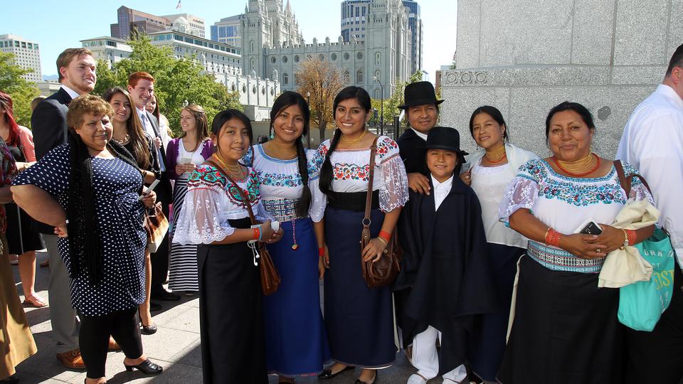 The attire of those attending conference often reflects the diversity of a global Church that now has more than 15 million members. A family currently living in Orem, Utah, wears their traditional Ecuador-style clothing.