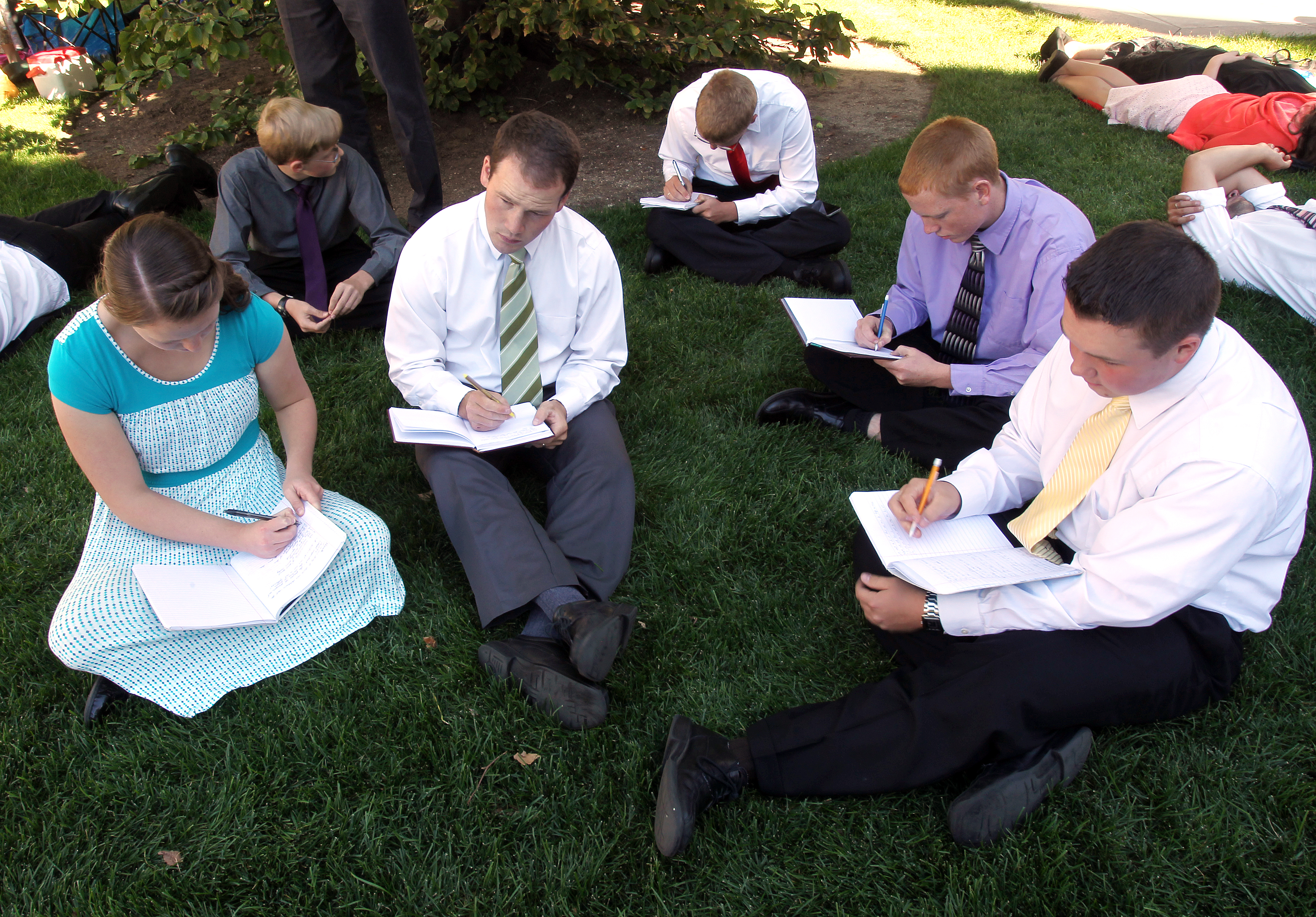 These youth from Wyoming take notes as they listen to the messages. Church leaders often speak directly to younger members when delivering their talks to give encouragement and counsel to help them navigate challenges in their lives. Many of today’s youth may be the future leaders of the Church.