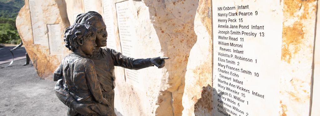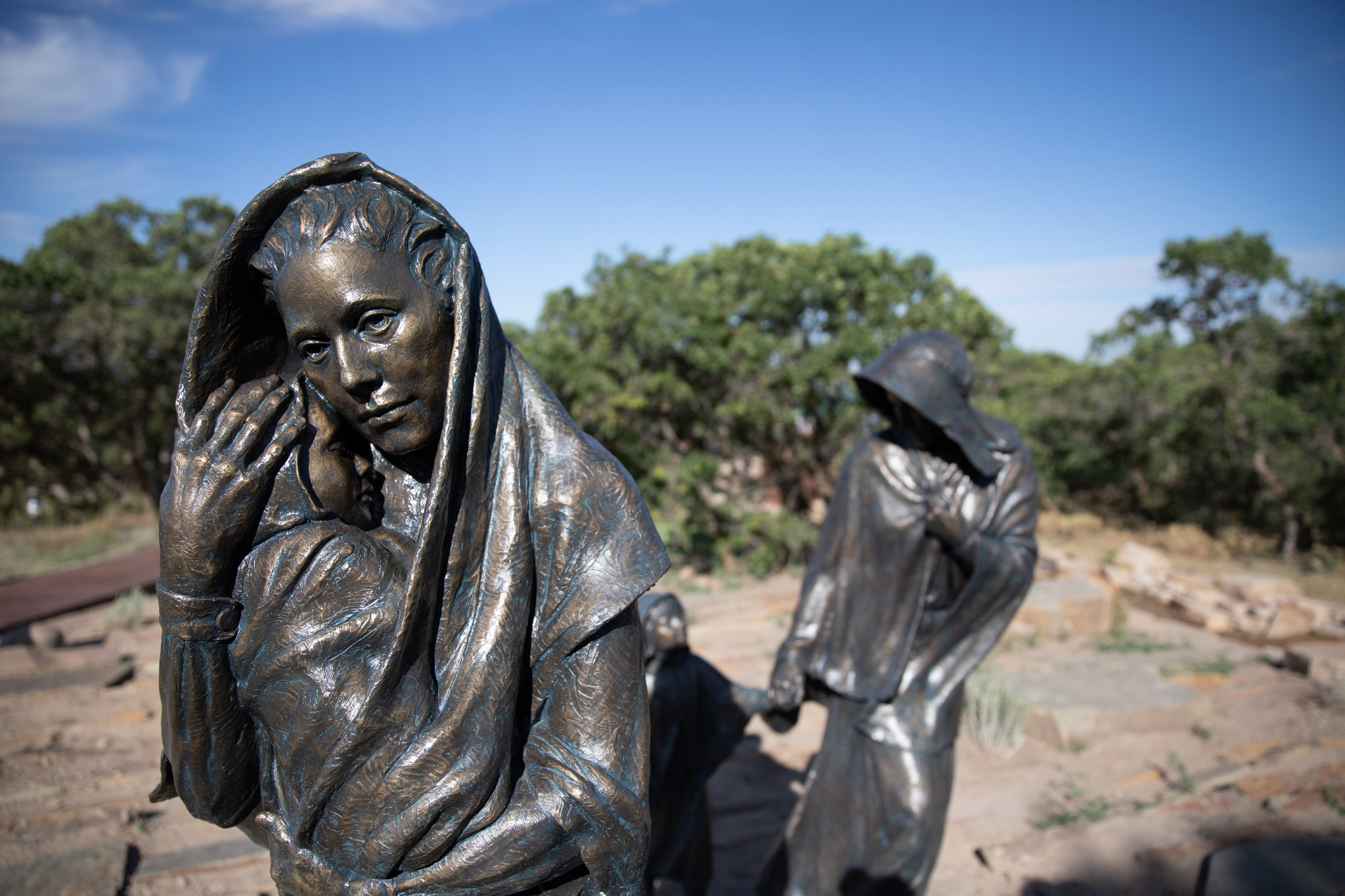 The site is intended to be a place of meditation and reflection. It includes seating and shade for contemplation, conversation, and appreciation of Utah’s pioneer heritage. A tour of the memorial ends with a view of the Salt Lake Valley and a bronze sculpture titled, "Journey's End."