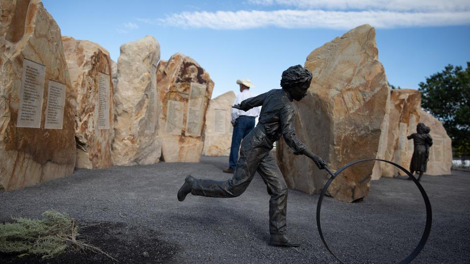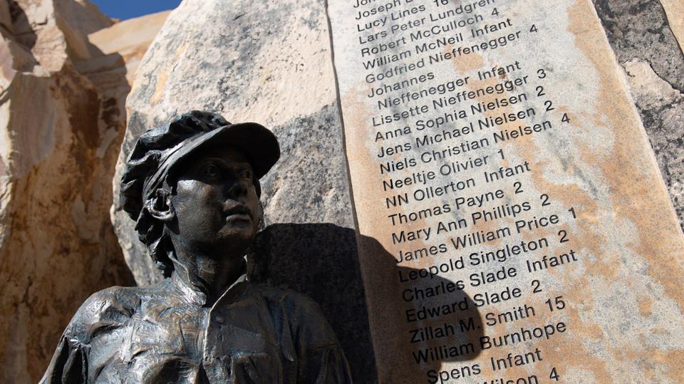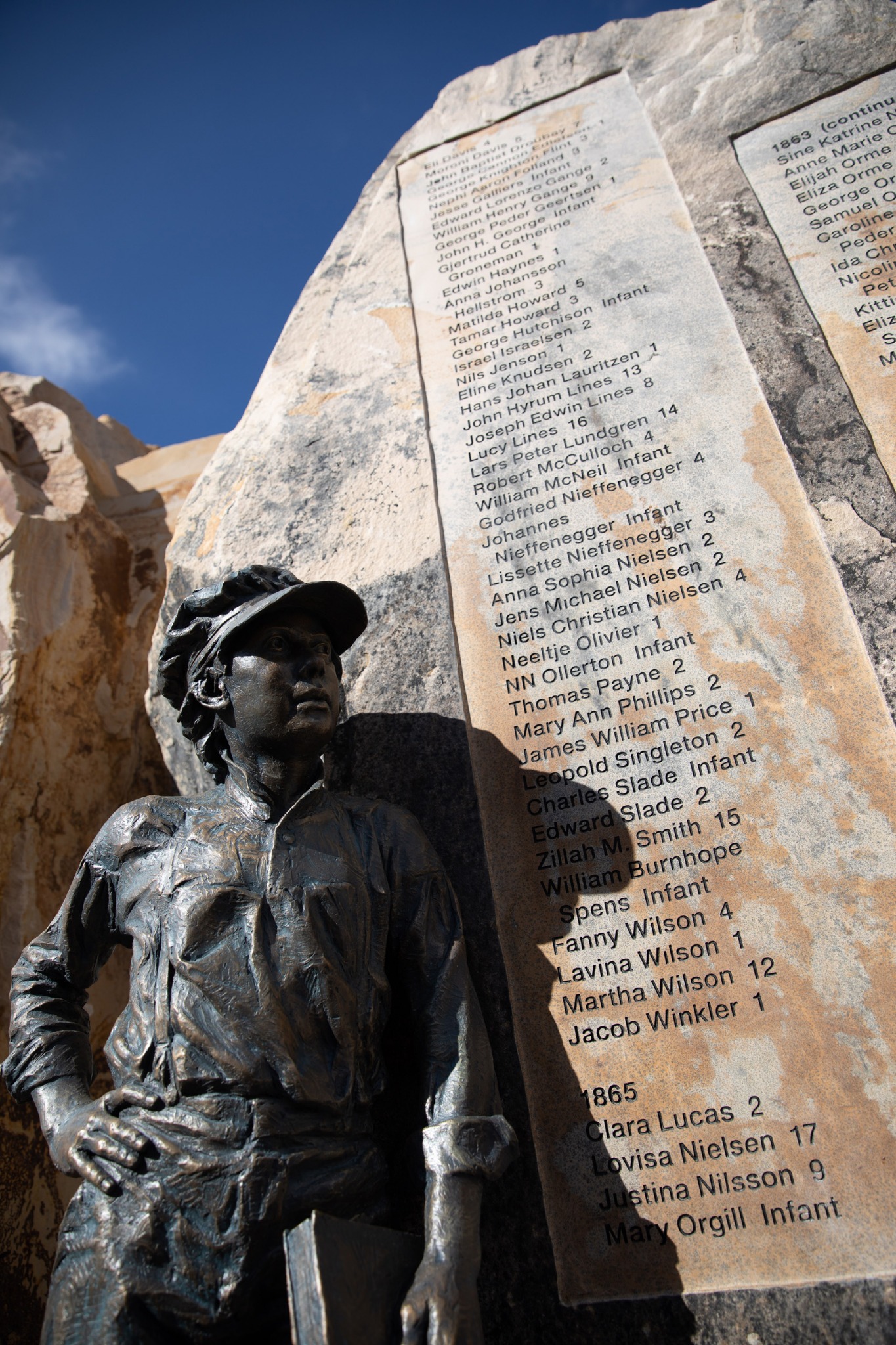 The names of the children are etched in 17 large stones. Many of their stories are told through graphic displays, text, audio and video narratives, and 47 bronze statues that communicate something of the emigration history and the grit and resilience of the pioneers. Artists created the statues in conjunction with the Metal Arts Foundry in Lehi, Utah.