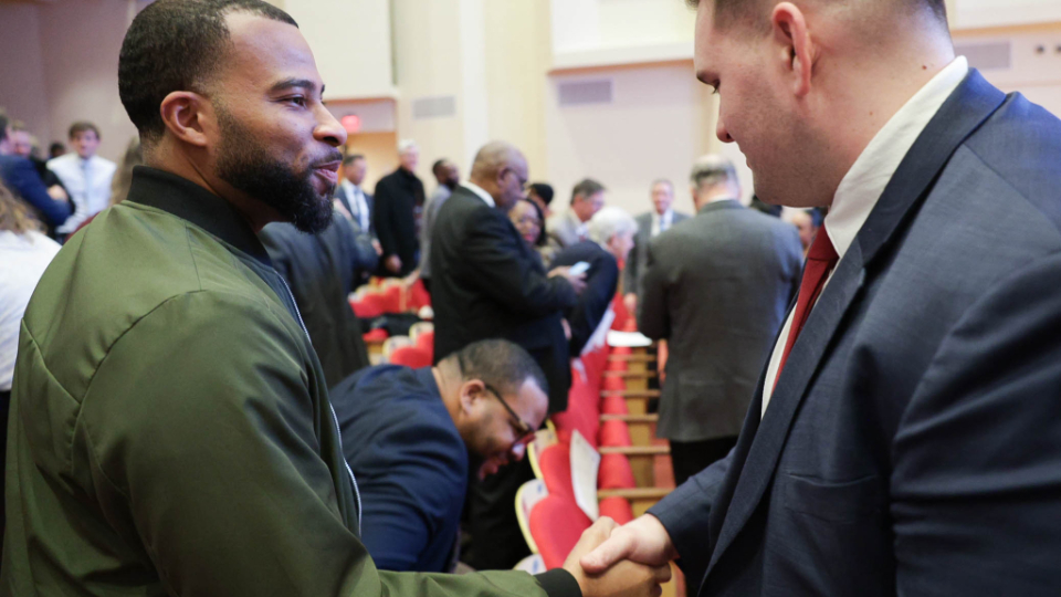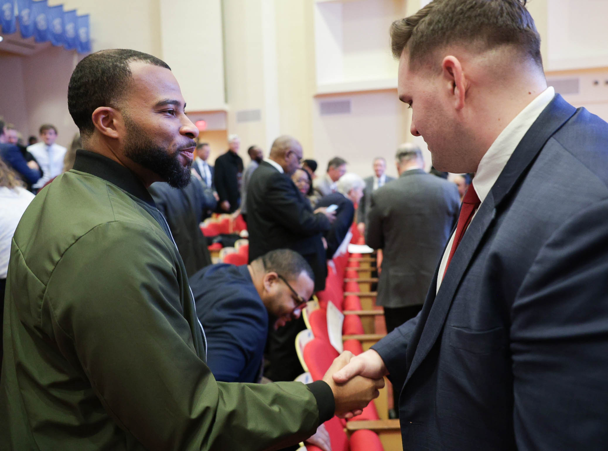 Congregants interact during a Vespers at historically Black Morehouse College in Atlanta, Georgia, on Sunday, February 1, 2026. A newly commissioned portrait of Joseph Smith Jr., first president and prophet of The Church of Jesus Christ of Latter-day Saints, was unveiled during the service.2026 by Intellectual Reserve, Inc. All rights reserved.The portrait coming to Morehouse resonated deeply with Black Latter-day Saints who witnessed the unveiling.