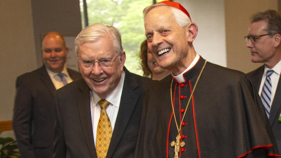 “Cardinal Wuerl, we thank you for your commitment to religious liberty and, more importantly, for your example of a life dedicated to our Lord Jesus Christ,” said President Ballard, who presented the Catholic prelate with the Brigham Young University Management Society's Distinguished Community Leader Award. “We are grateful for your example and friendship, Cardinal Wuerl. We admire your values amidst a culture that seems more hostile to religious faith.”