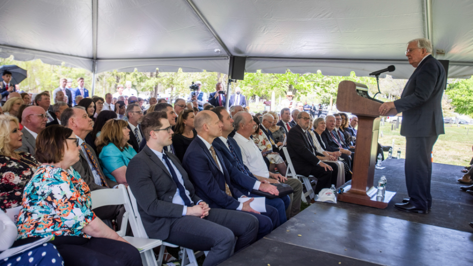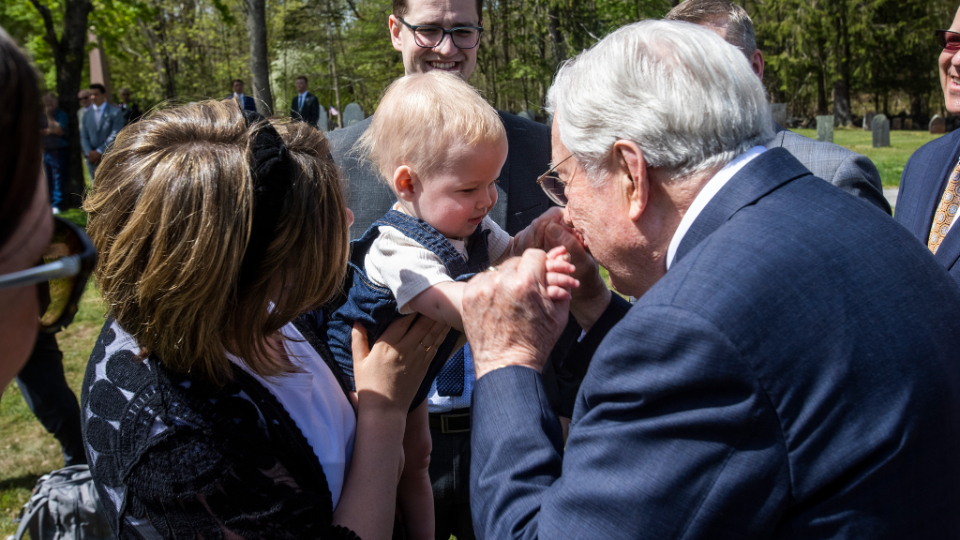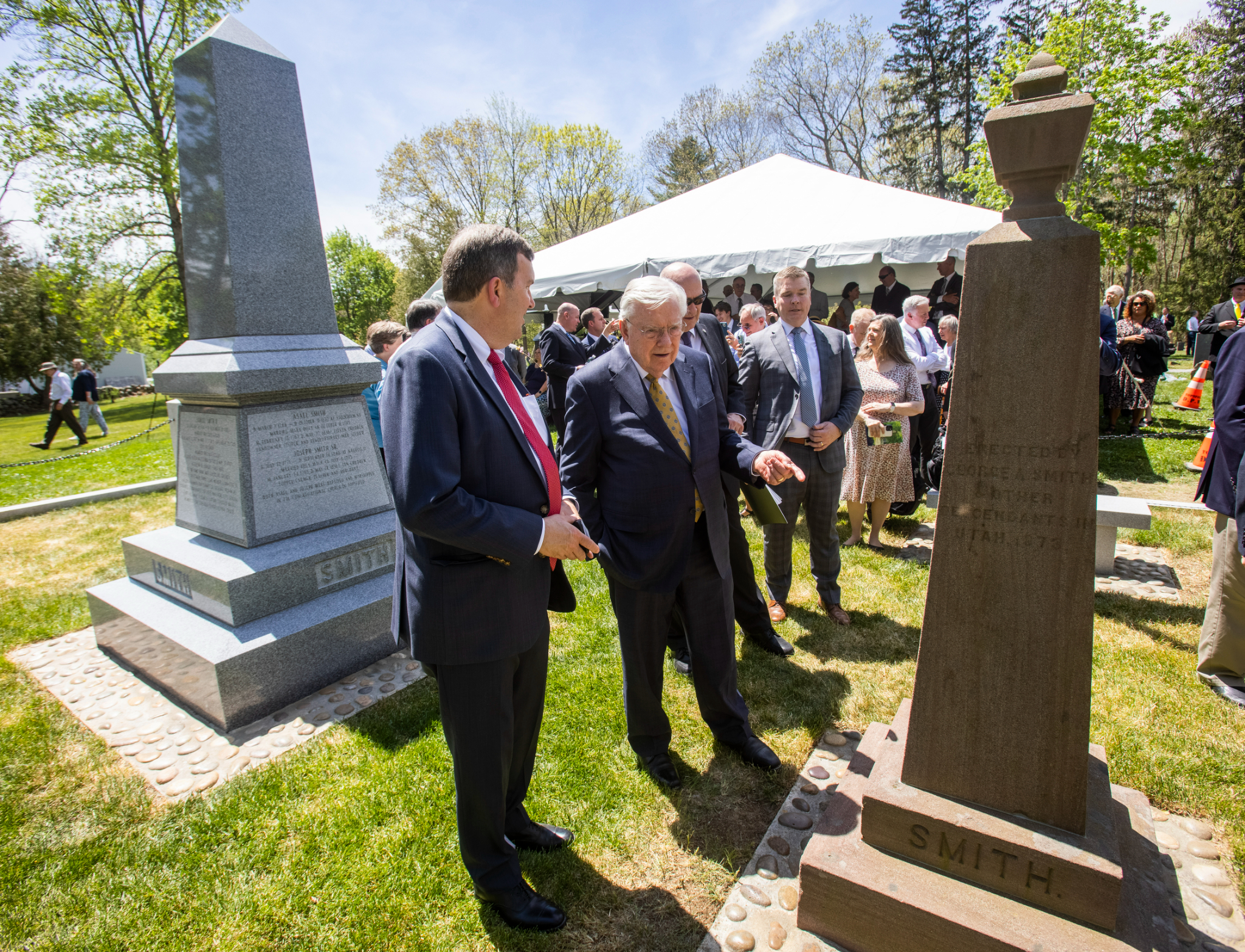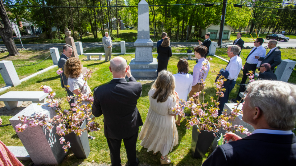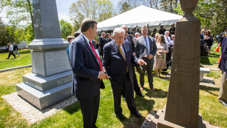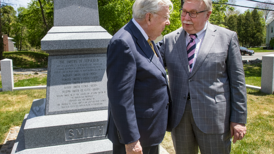 President M. Russell Ballard, Acting President of the Quorum of the Twelve Apostles and a great-great-nephew of Joseph Smith Jr. (the founder of Jesus Christ’s global Church), gathered on a warm and sunny Saturday morning with around 350 others at the Pine Grove Cemetery in Topsfield, Massachusetts, to dedicate a new monument to Joseph’s ancestors.