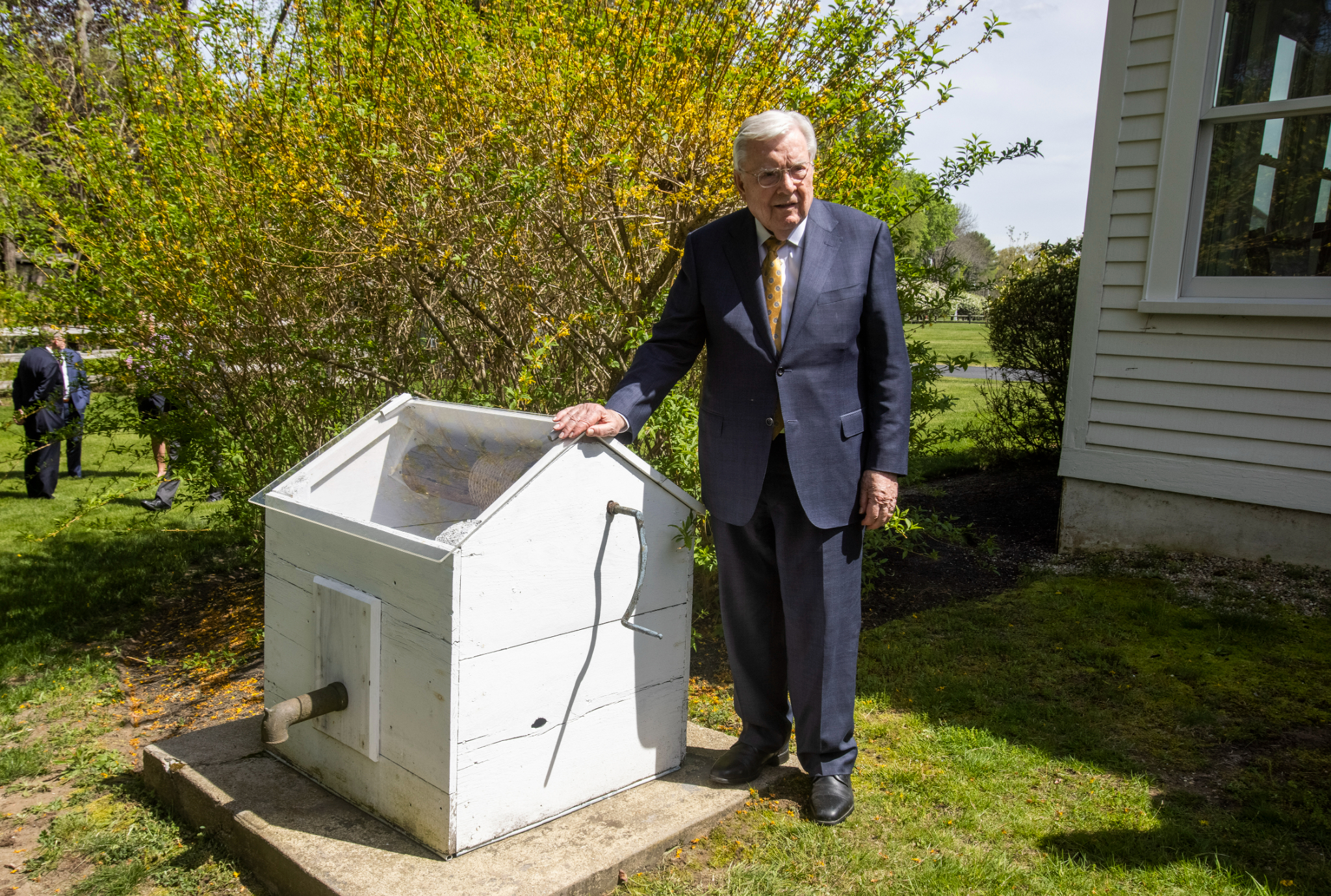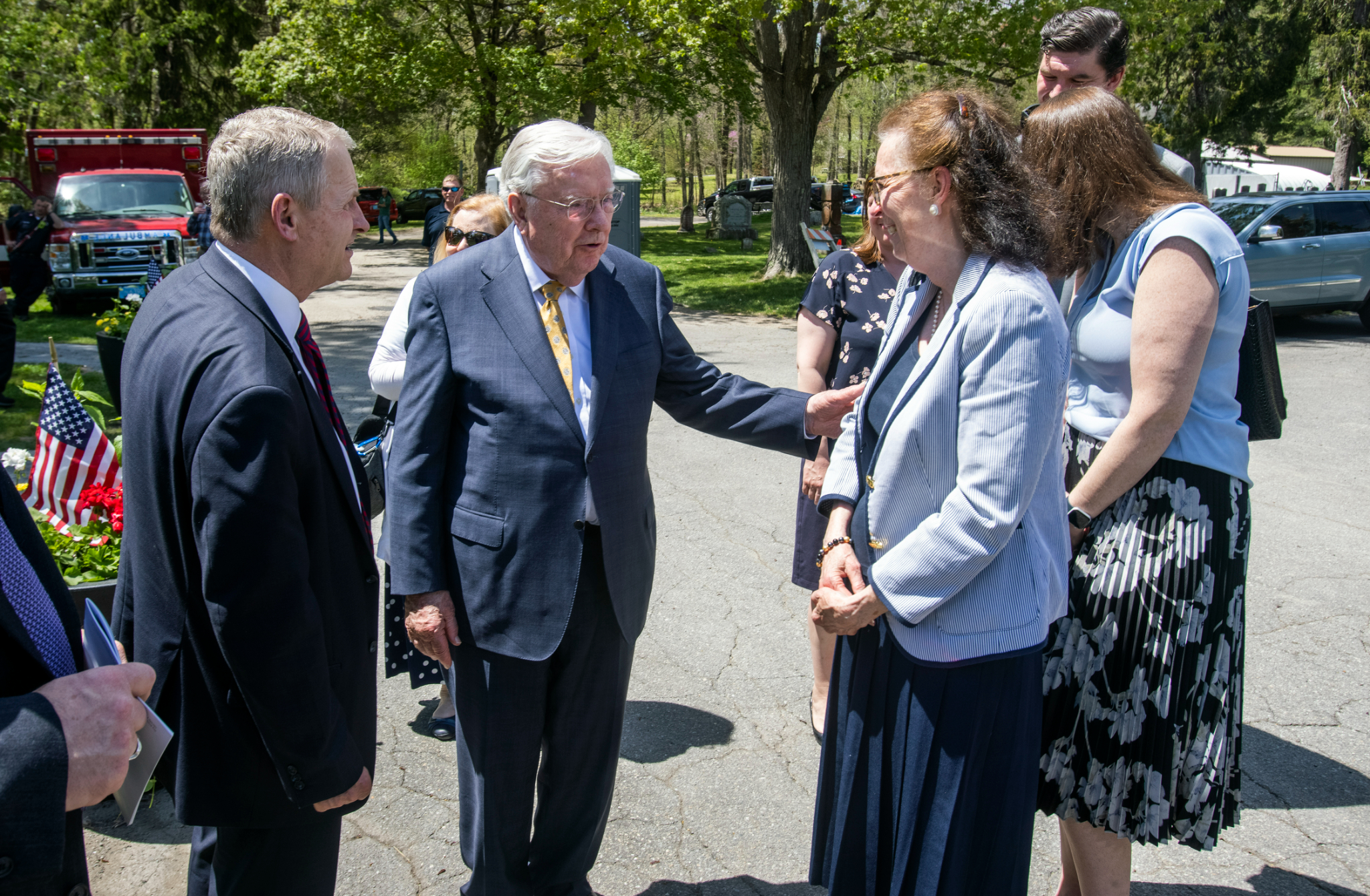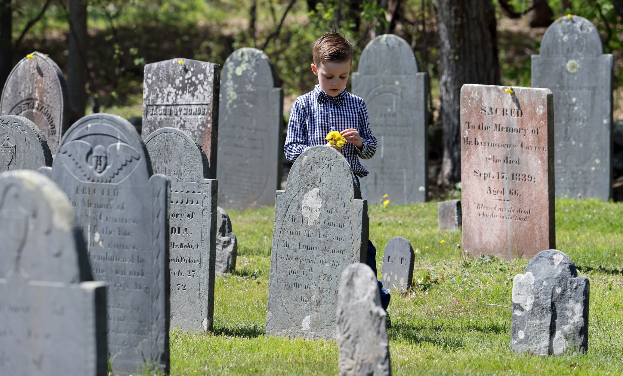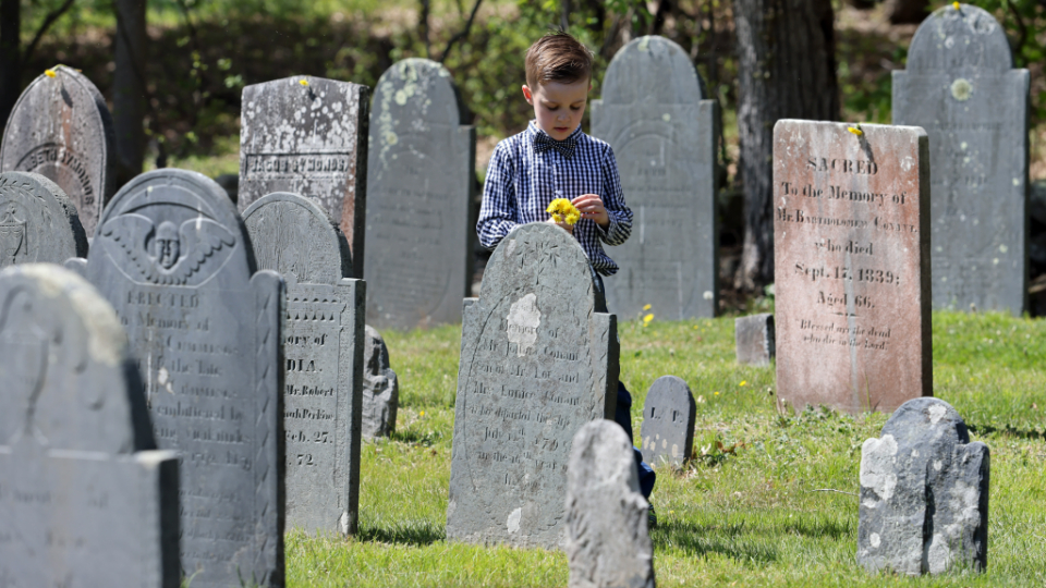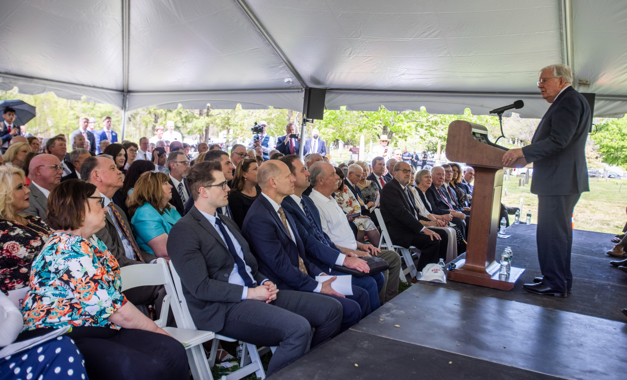 President M. Russell Ballard stands next to a well of what was the homestead of four generations of Smiths in Topsfield, Massachusetts. The well was dug by Asael Smith in the 1700s. A photo was taken of President Ballard’s great-grandfather, Church President Joseph F. Smith, next to this well in 1905.In his dedicatory prayer, President Ballard asked the Almighty to bless all who come to this cemetery to feel its spiritual gravitas.