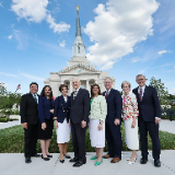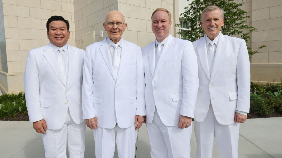 President Oaks was joined by his wife, Sister Kristen M. Oaks; Elder W. Mark Bassett of the North America Northeast Area Presidency and a General Authority Seventy and his wife, Sister Angela Bassett; Elder Kevin R. Duncan, executive director of the Church’s Temple Department and a General Authority Seventy, and his wife, Sister Nancy Duncan; and Elder Michael John U Teh, a General Authority Seventy, and his wife, Sister Grace Teh.