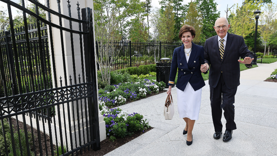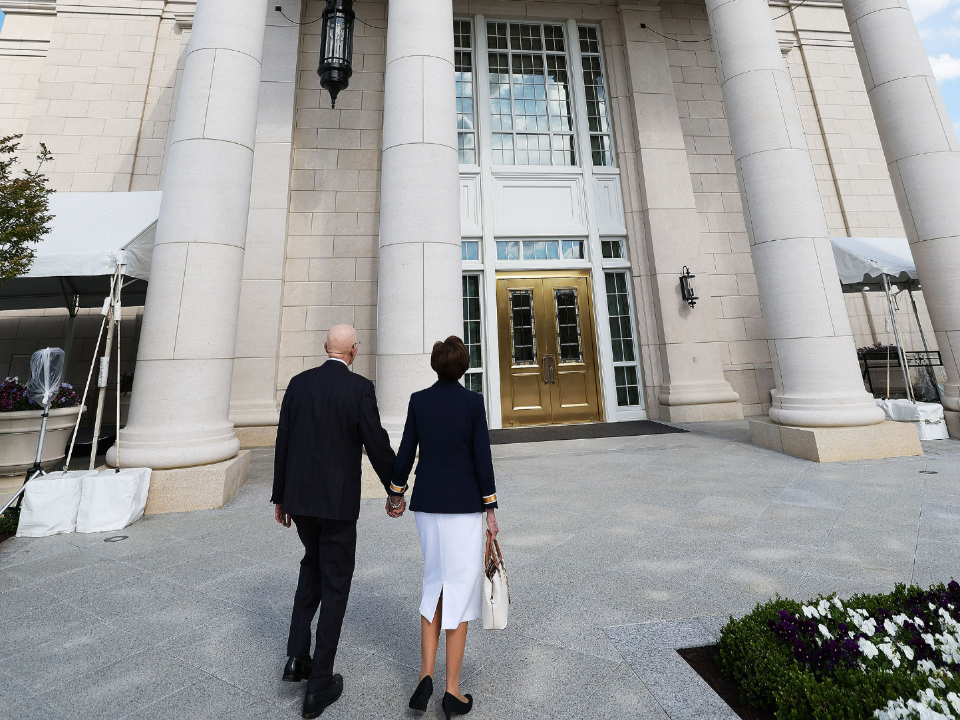 President Dallin H. Oaks and his wife, Sister Kristen M. Oaks, arrive at the Richmond Virginia Temple prior to the temple's dedication on Sunday, May 7, 2023.2023 by Intellectual Reserve, Inc. All rights reserved.Ruth Henshaw reflected on these memories as she attended one of Sunday’s dedicatory sessions.