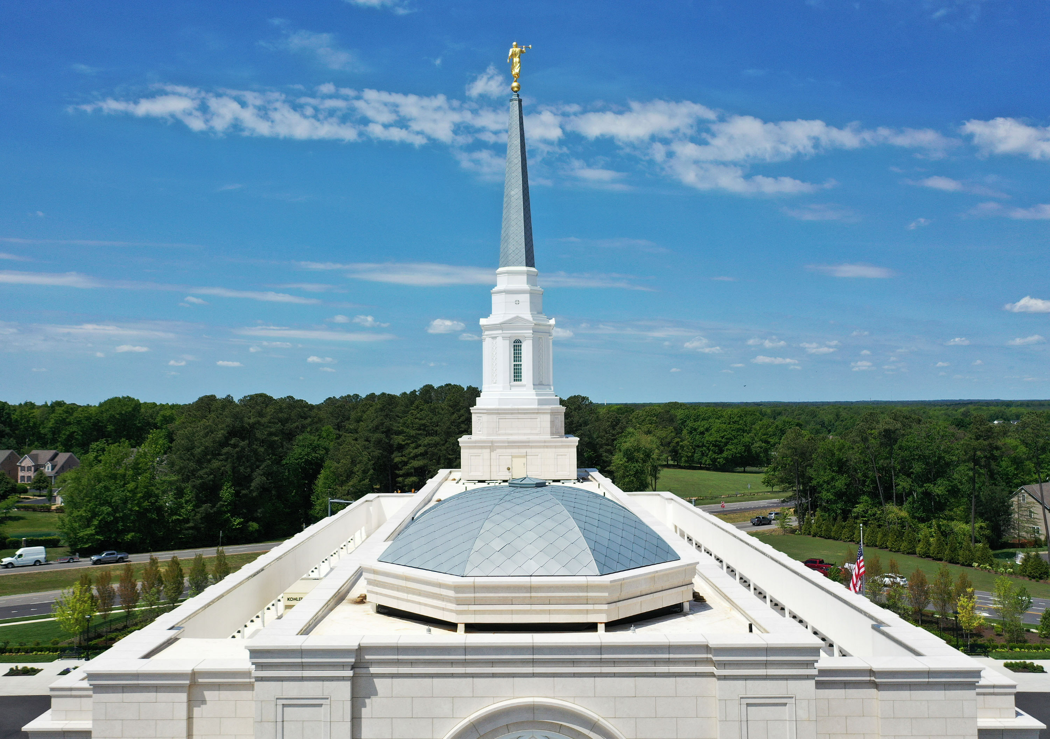 The steeple of the Richmond Virginia Temple on the day of its dedication, Sunday, May 7, 2023.2023 by Intellectual Reserve, Inc. All rights reserved.Symbol of Religious Freedom