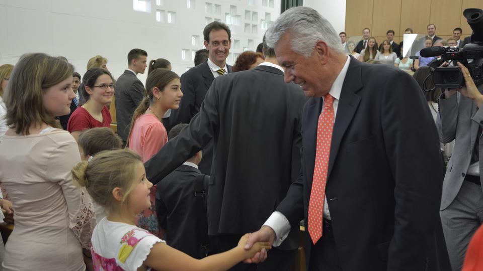 President Dieter F. Uchtdorf, second counselor in the First Presidency of The Church of Jesus Christ of Latter-day Saints, and his wife, Harriet, visited Western Europe to celebrate several milestones of the Church. They met with Church members, leaders and dignitaries in Switzerland, Italy and Poland 7-17 June 2014.
