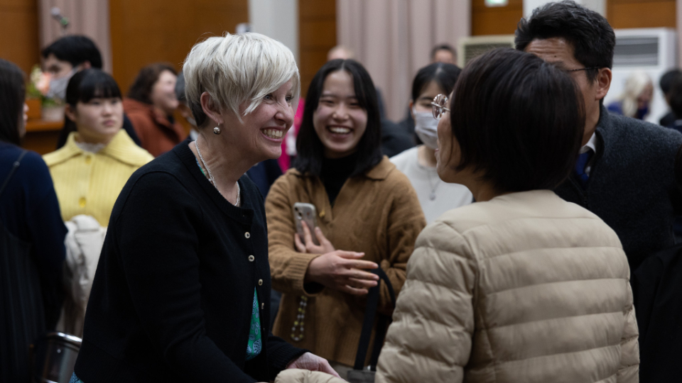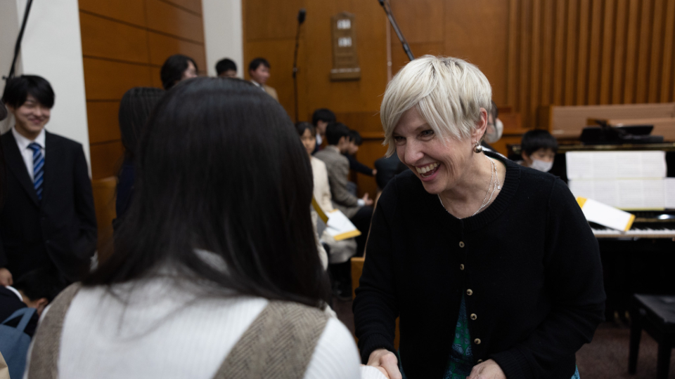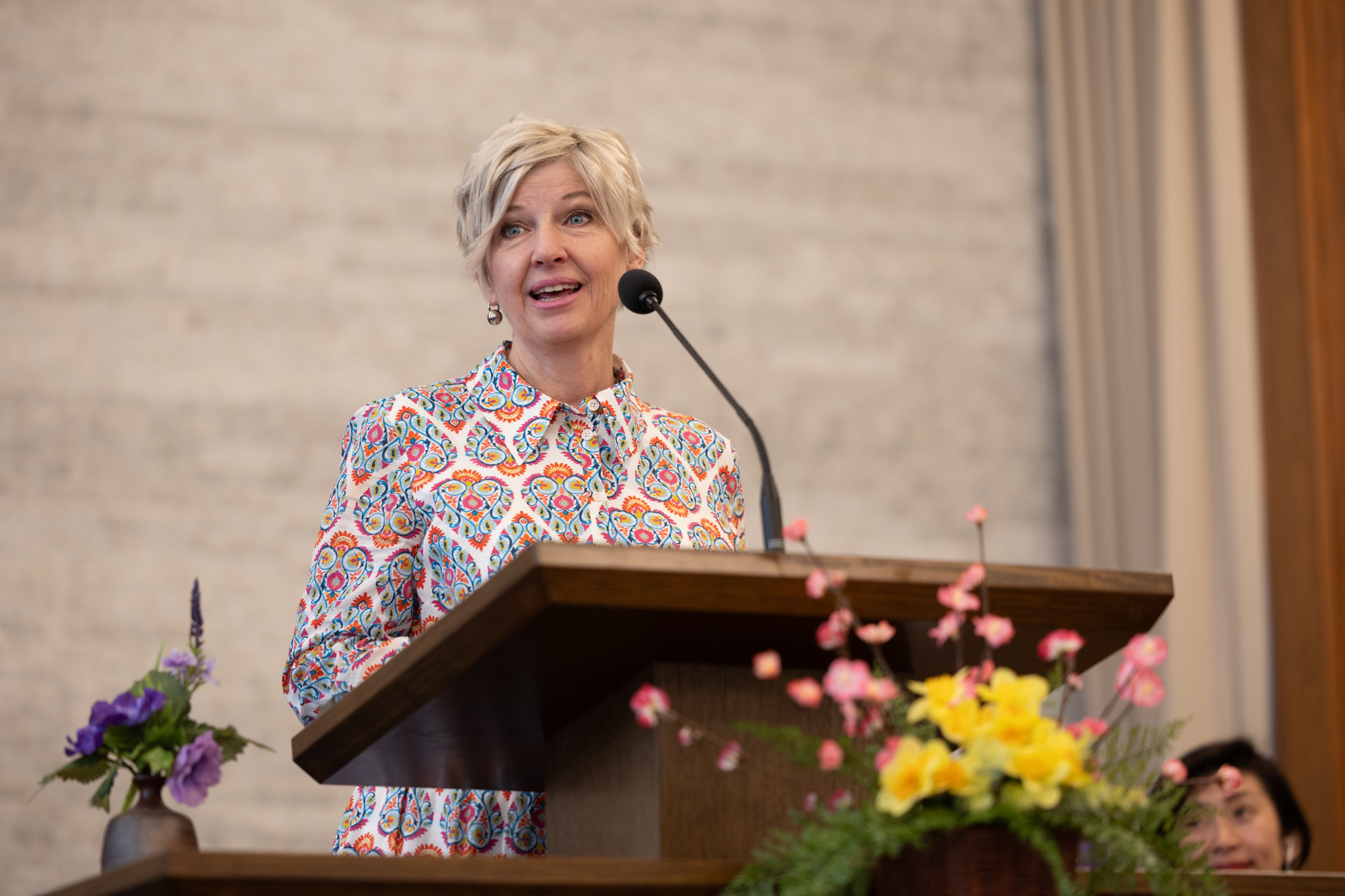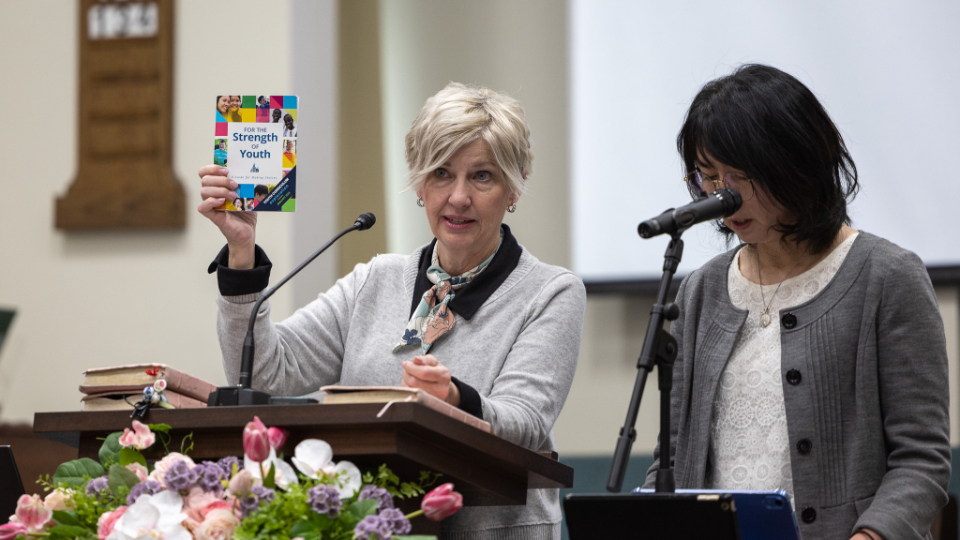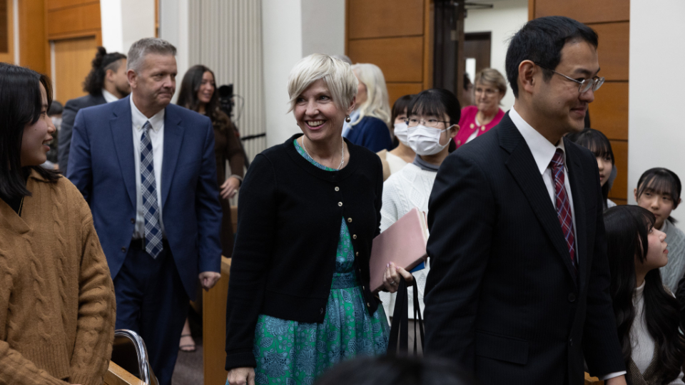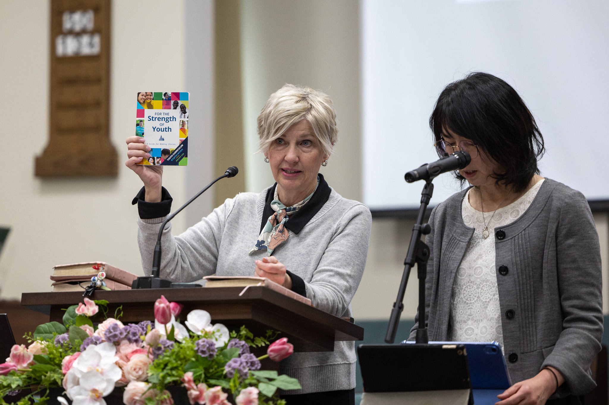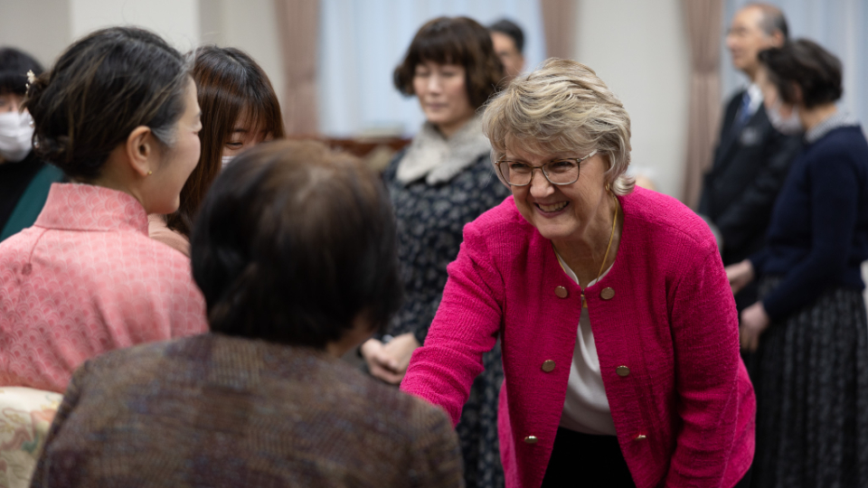 During a five-day stop in western Japan, the Young Women General President of The Church of Jesus Christ of Latter-day Saints invited youth and young adults to bring people to the Savior of the world.