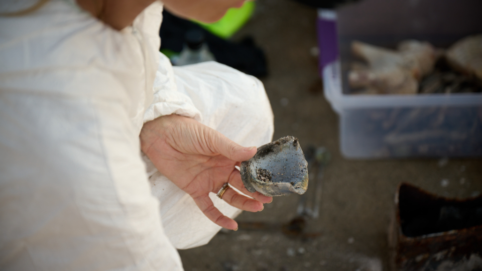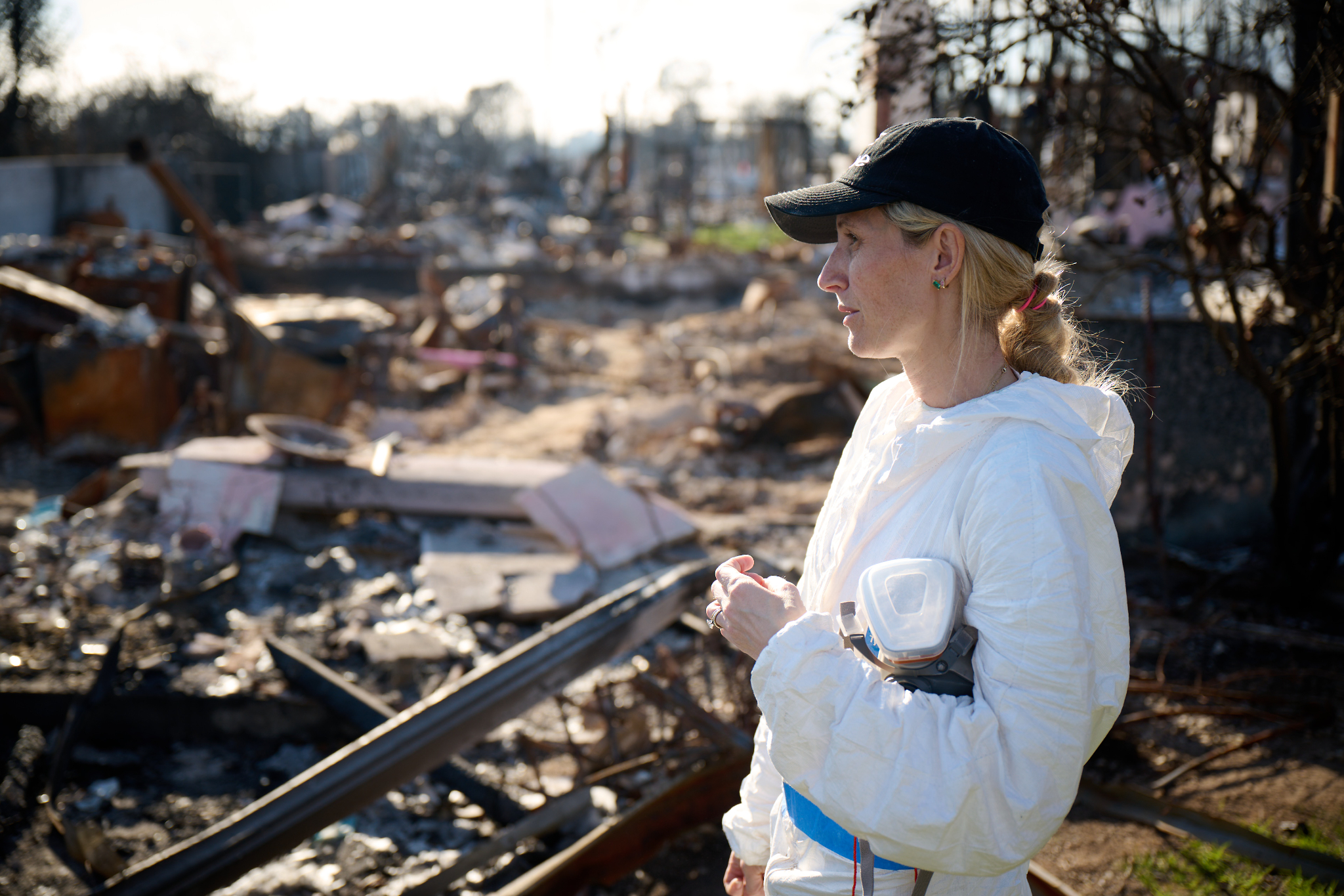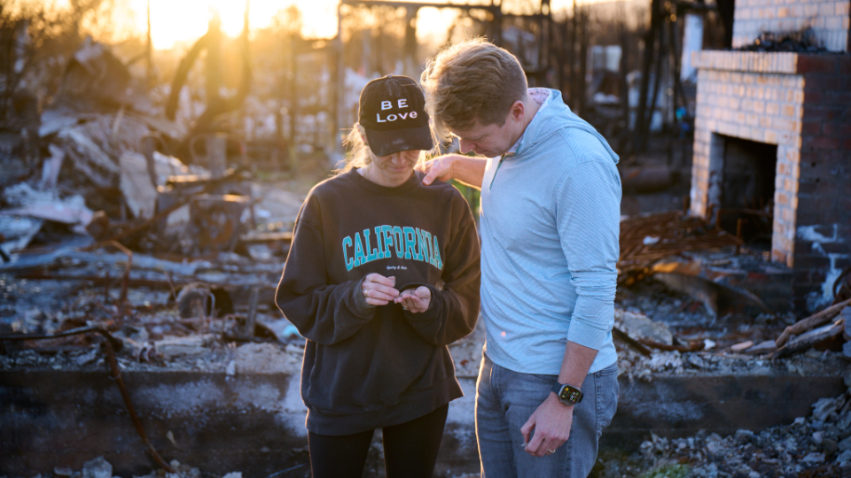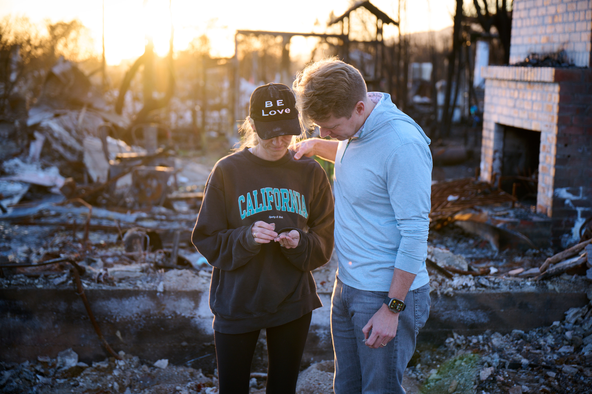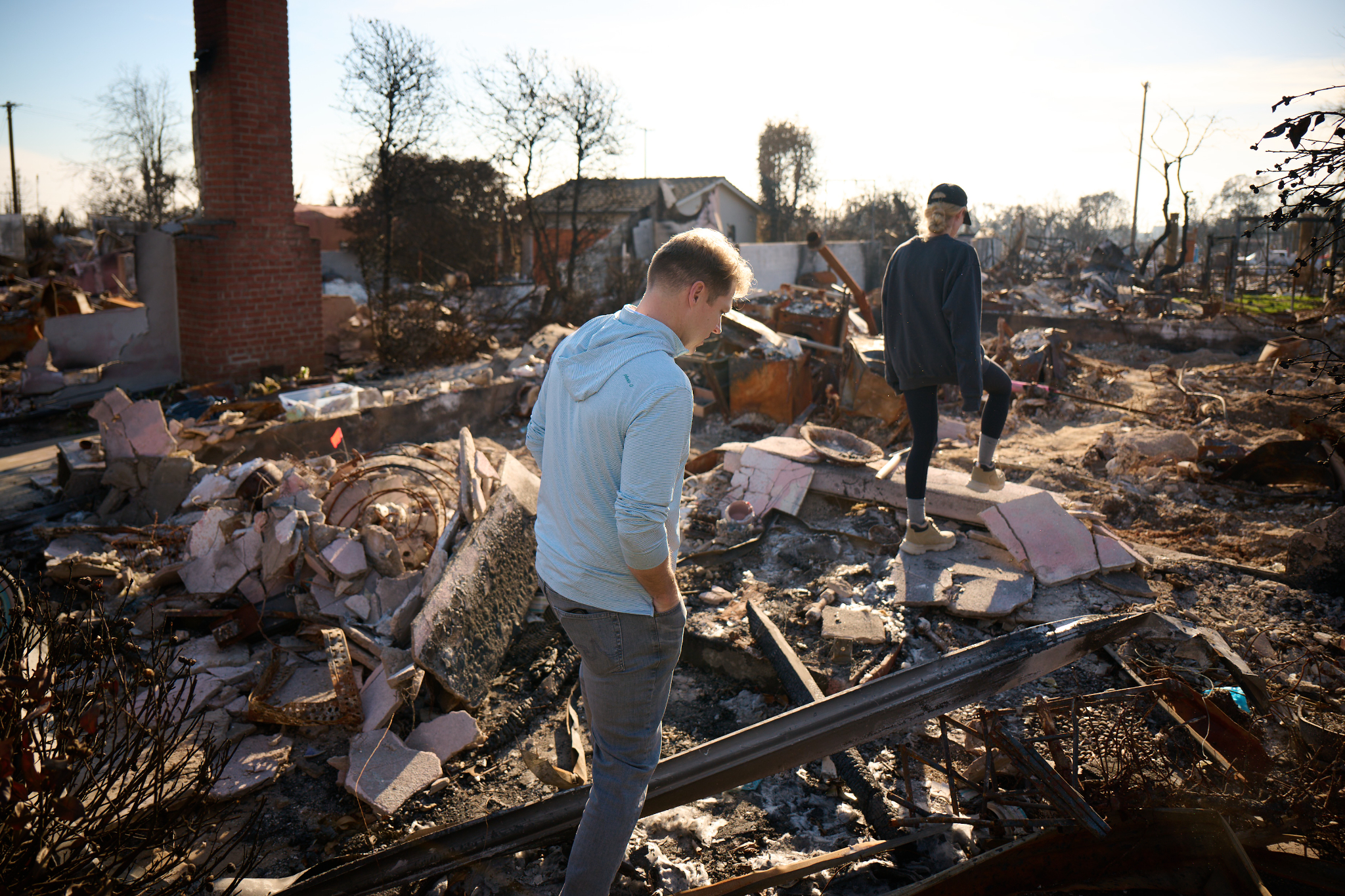 Hilary Cannon sifts through the ashes of the lot where their home once stood, looking for keepsakes that are important to their family, in Pacific Palisades, California, on February 21, 2025.2025 by Intellectual Reserve, Inc. All rights reserved.