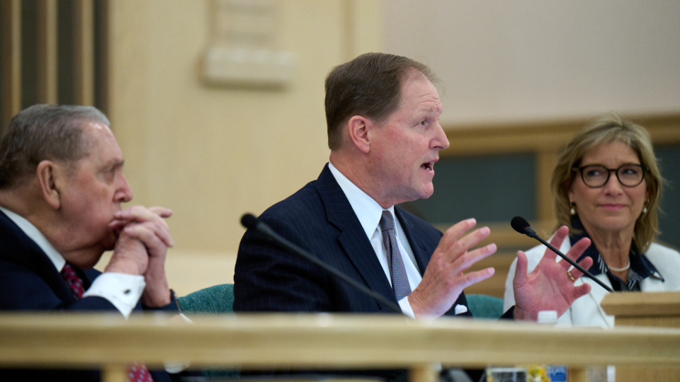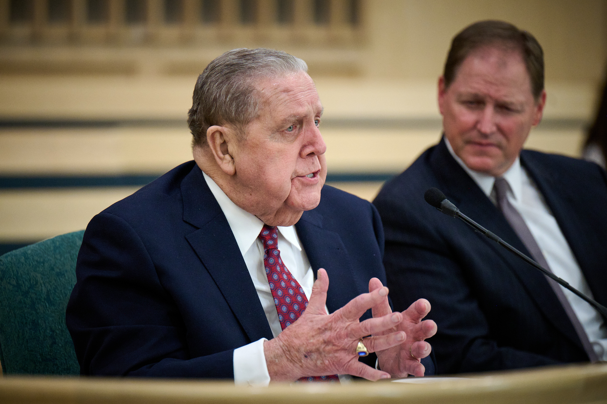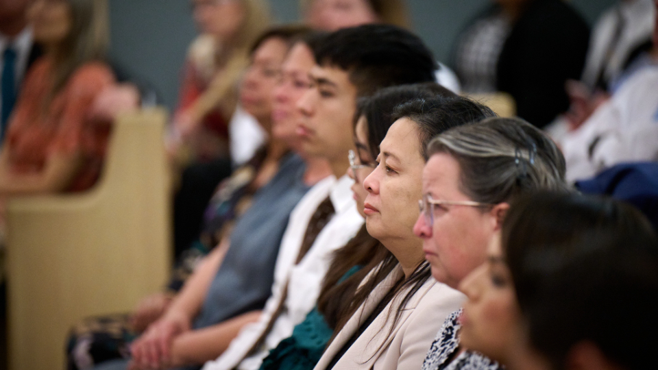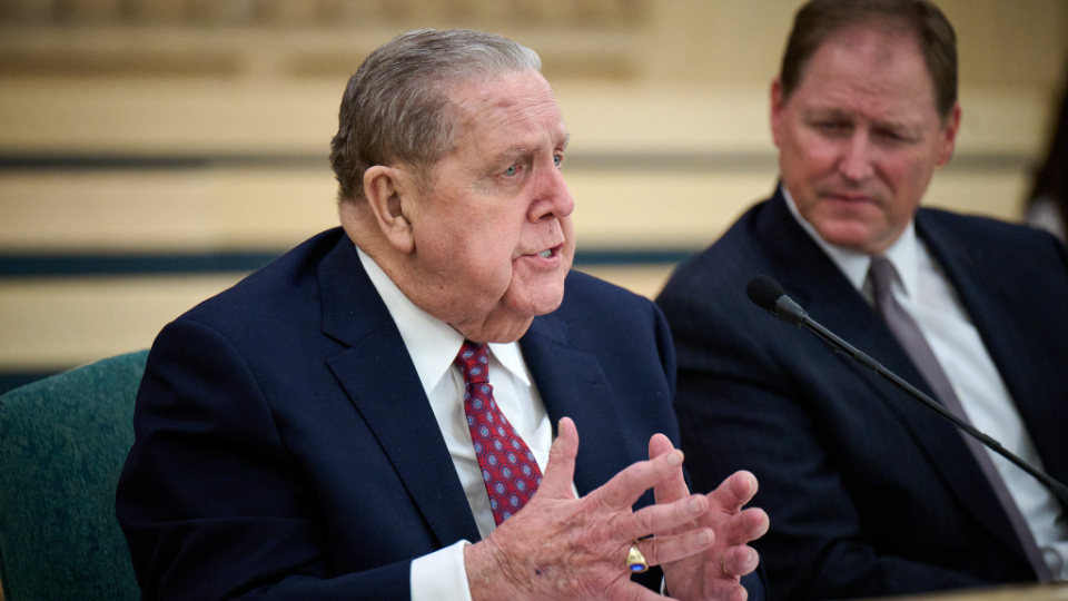 Members of The Church of Jesus Christ of Latter-day Saints from Pasadena, Palisades and Altadena, California, who were impacted by the recent wildfires gathered in a chapel on Saturday, February 22, 2025, to hear from President Jeffrey R. Holland, the Acting President of the Quorum of the Twelve Apostles.