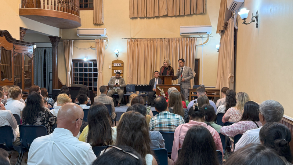 While in Nepal, President Johnson also ministered to Latter-day Saints. More than 100 people gathered in a local chapel (a rented house) to hear from the global Church leader.