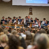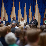 “And it’s not just limited to Hoosiers,” Crouch said to Latter-day Saints in the audience during her keynote remarks. “When the Afghans were at Camp Atterbury, you all made it a point to support and to give through clothing, through hygiene kits, through 1,700 pairs of shoes. You all were taking care of the ones who couldn’t take care of themselves.”