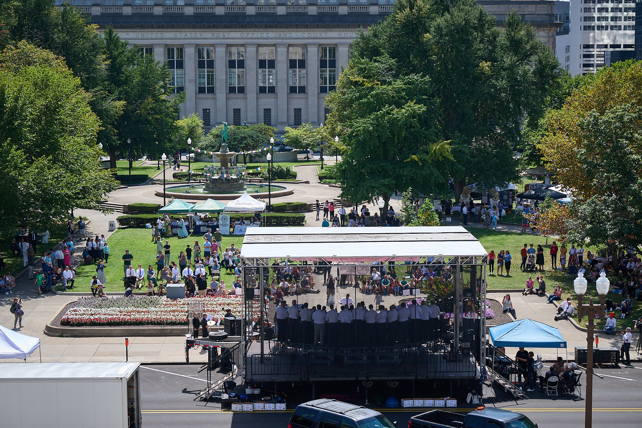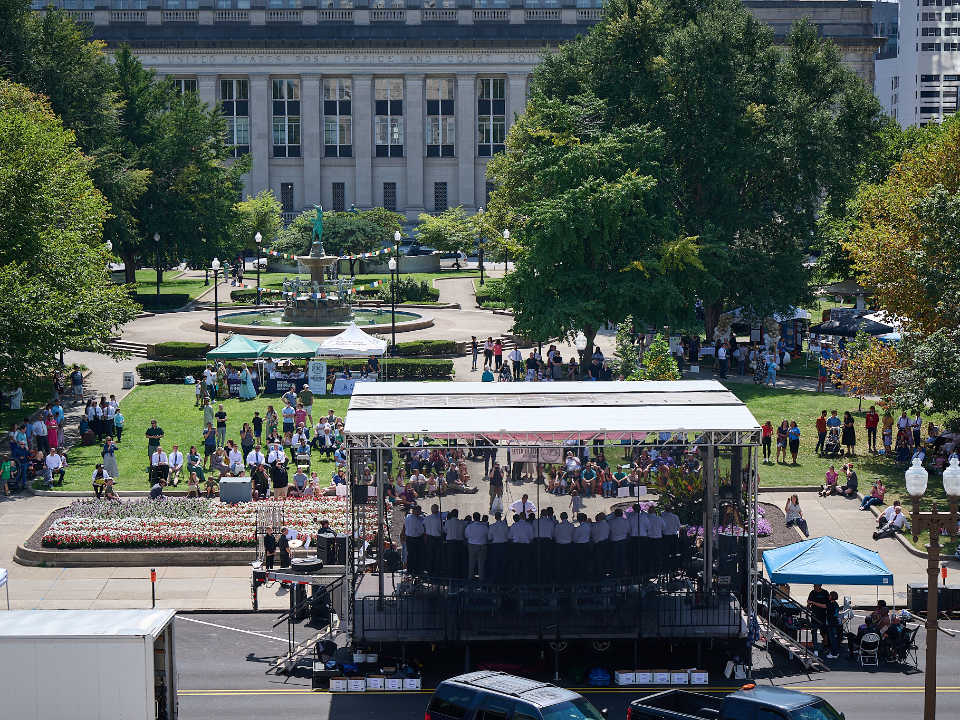 On Sunday afternoon, President Johnson and Elder Sikahema participated in the 11th Annual Indy Festival of Faiths, held at the historic University Park in downtown Indianapolis.