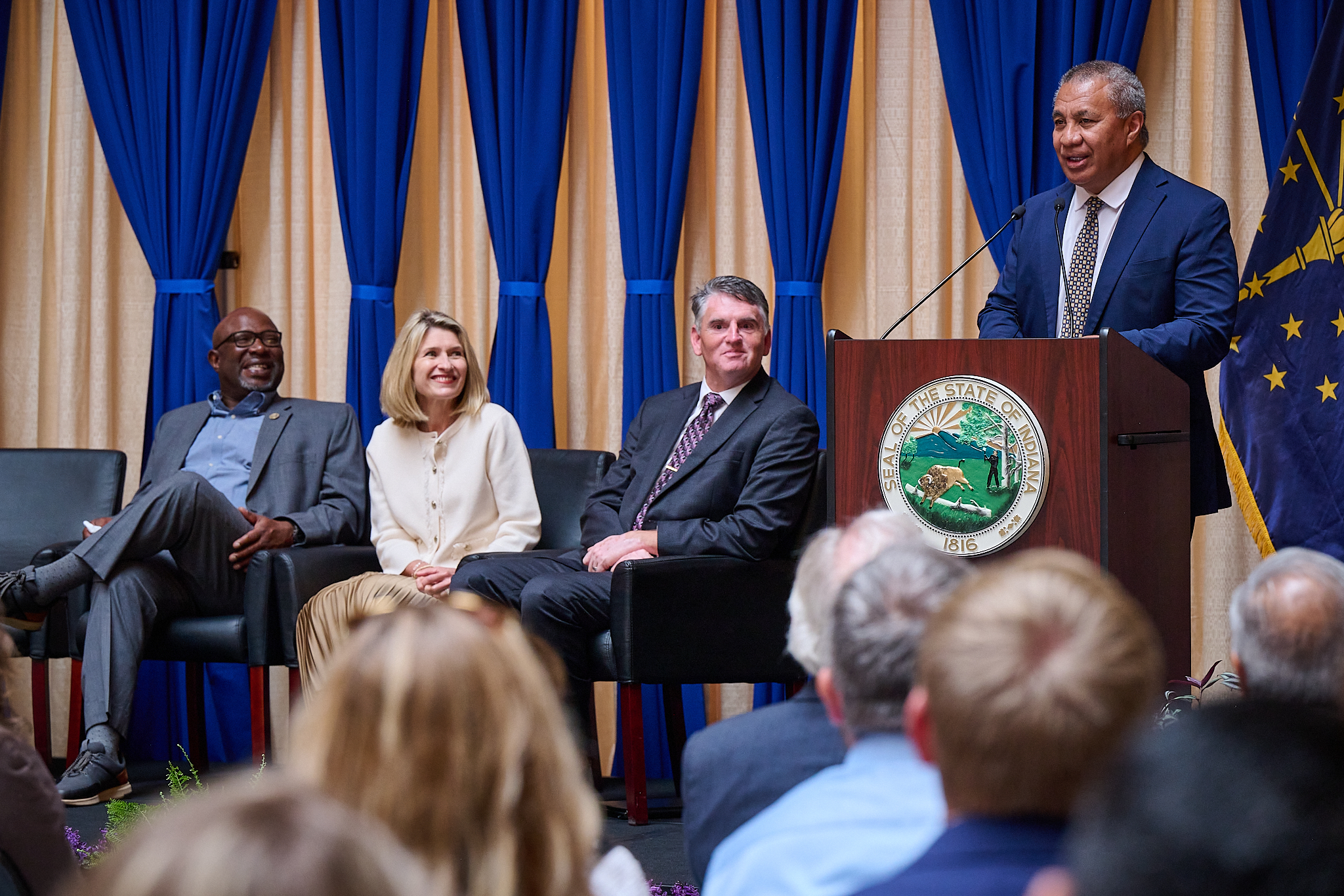 Indiana Senate Democratic Leader Greg Taylor (middle) and Relief Society General President Camille N. Johnson (right) during the “Come and See” event at the Statehouse in Indianapolis on September 8, 2023. Elder Vaiangina Sikahema (left), President Johnson and Sen. Taylor were featured keynote speakers at the bipartisan event aimed at raising awareness about The Church of Jesus Christ of Latter-day Saints with lawmakers. 2023 by Intellectual Reserve, Inc. All rights reserved.Senate Democratic Leader Greg Taylor was another keynote speaker. He talked about the importance of community understanding and awareness.