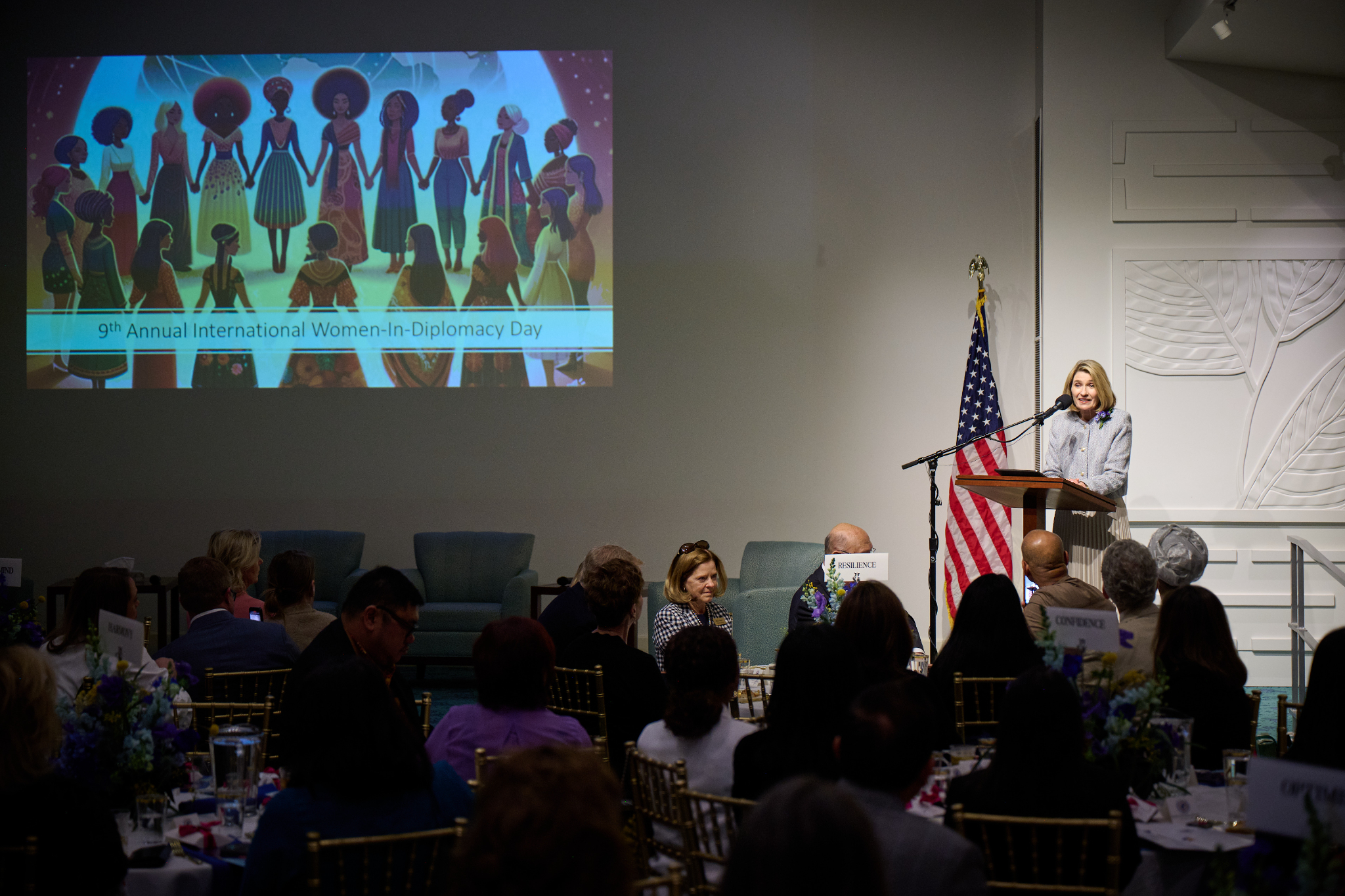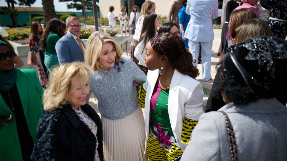 Relief Society General President Camille N. Johnson of The Church of Jesus Christ of Latter-day Saints joined a group of women diplomats in Los Angeles on Monday, March 10, 2025, for the 9th annual International Women-In-Diplomacy Day.