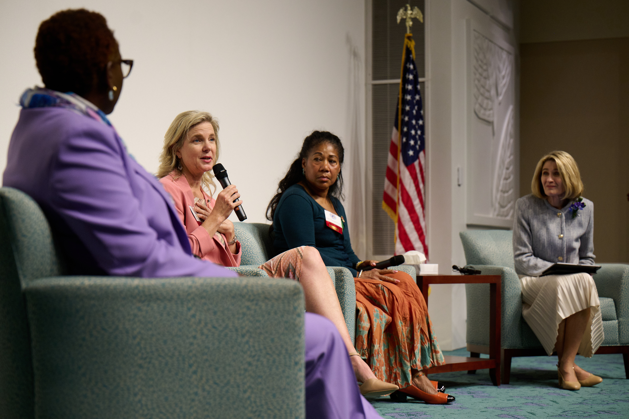 Women diplomats and other international leaders attended the panel discussions and other activities. President Johnson also moderated a panel discussion at the event.