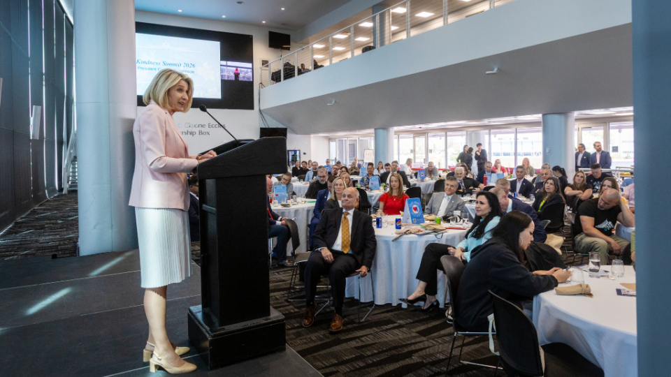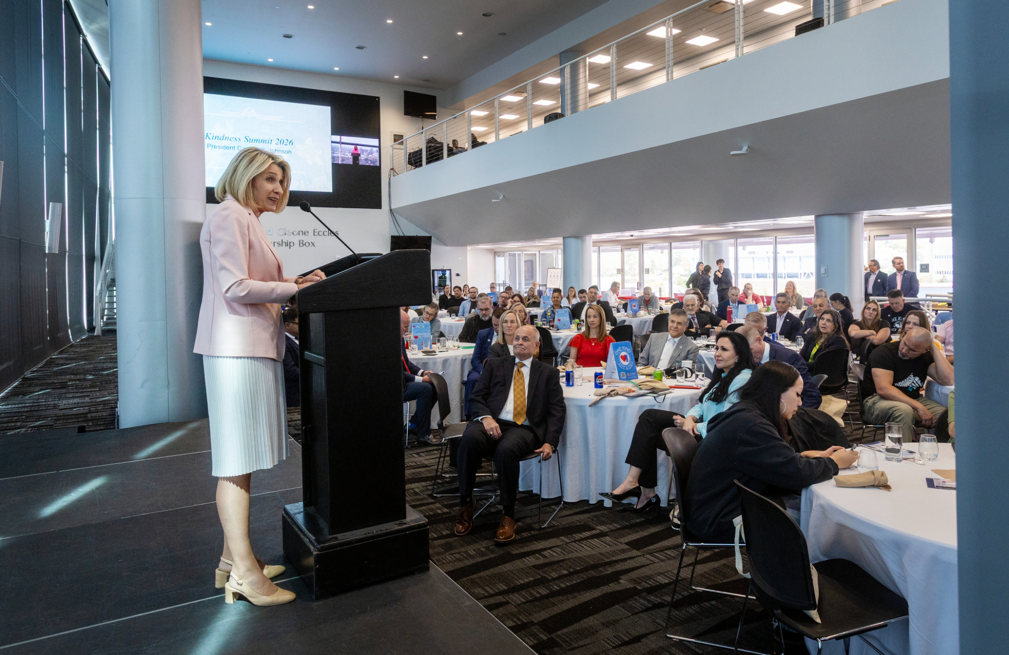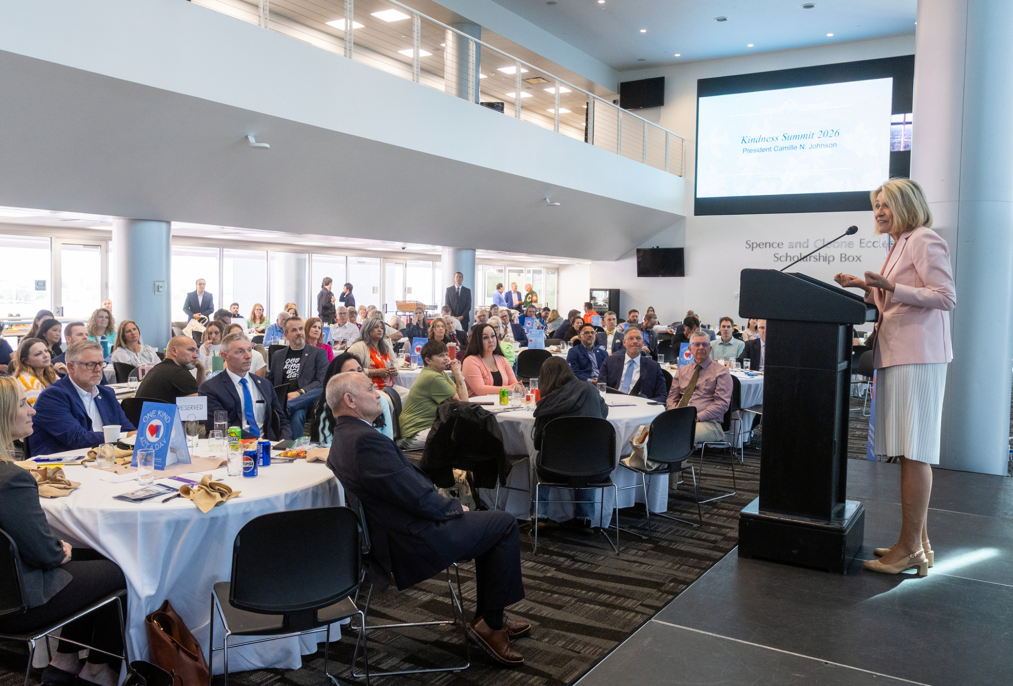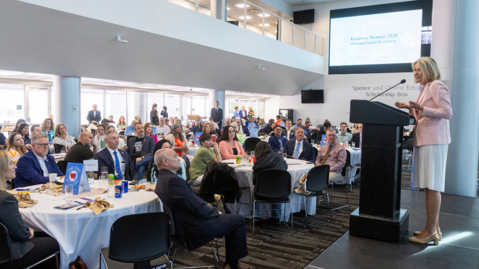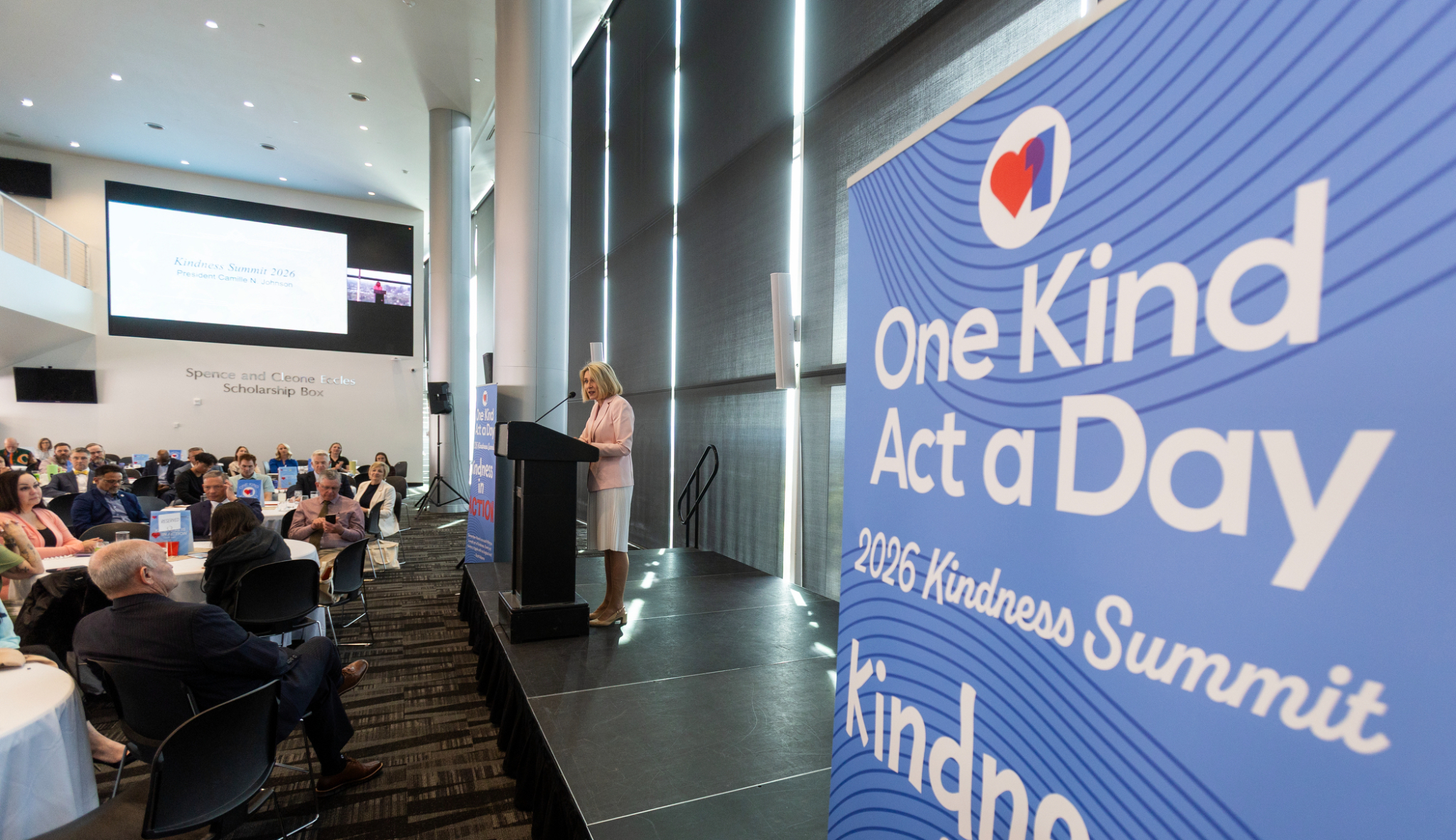 “Our kind acts, one a day over a lifetime, are vital to the well-being of our families, community and nation,” President Johnson told over 150 educators, business, government and religious leaders during the 2026 Kindness Summit at Rice-Eccles Stadium at the University of Utah in Salt Lake City, Utah.
