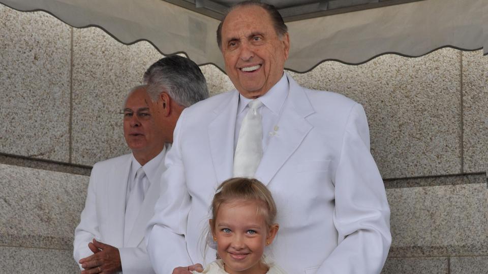 Prior to the dedication, President Monson sealed the temple cornerstone — a tradition marking the end of construction and the beginning of the sacred work inside the temple.