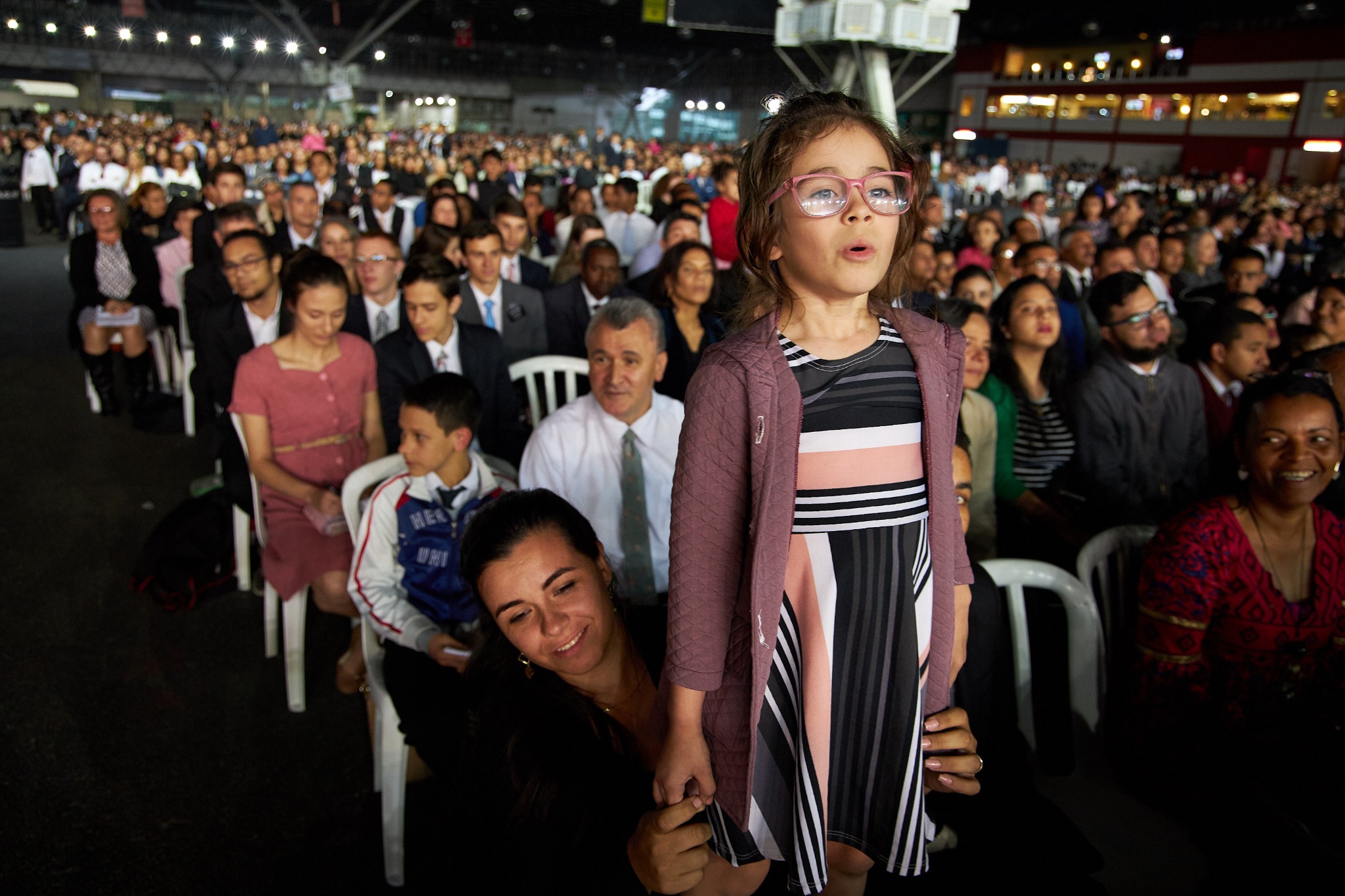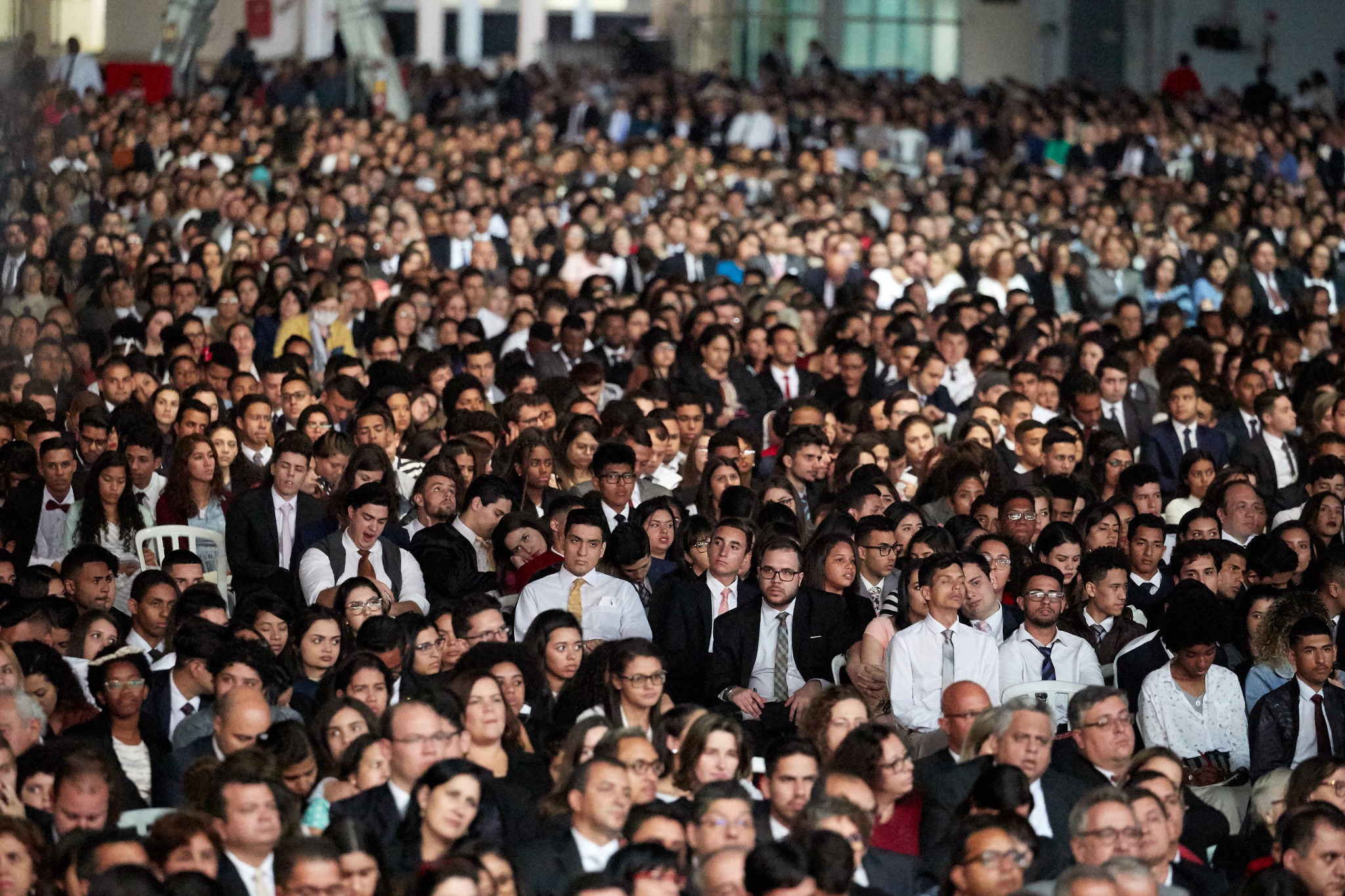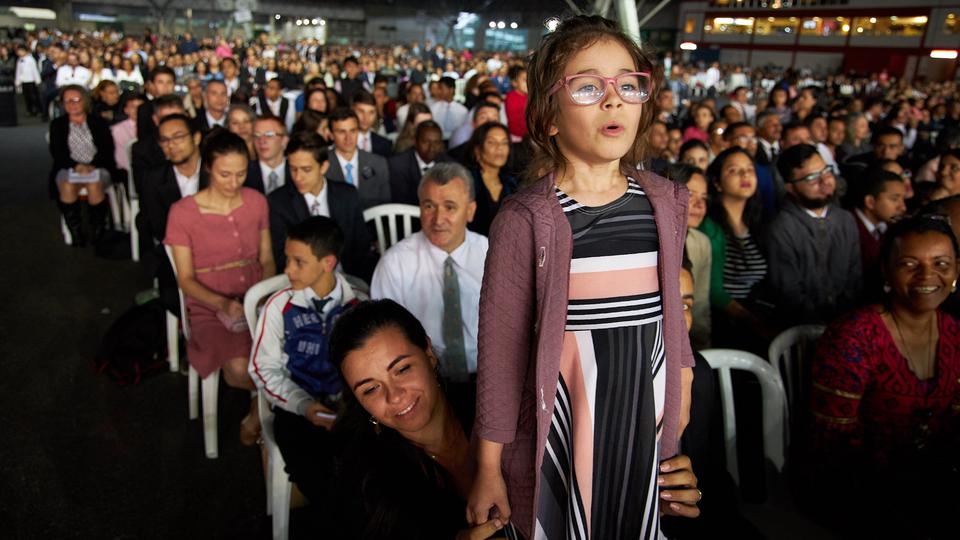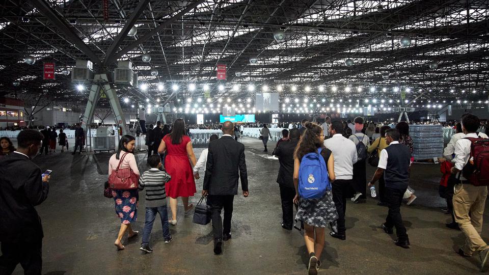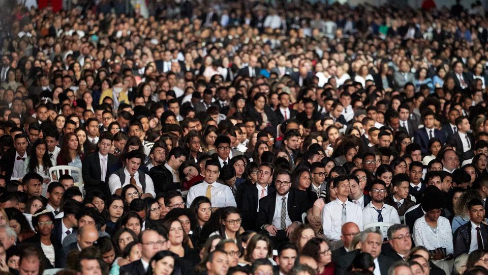 More than 37,000 people, including many families, lined up for up to eight hours before a devotional on Sunday at the Anhembi Convention Center. Many were seated five hours before the meeting began, filling the venue. This was the largest gathering President Nelson has spoken to outside of the U.S.