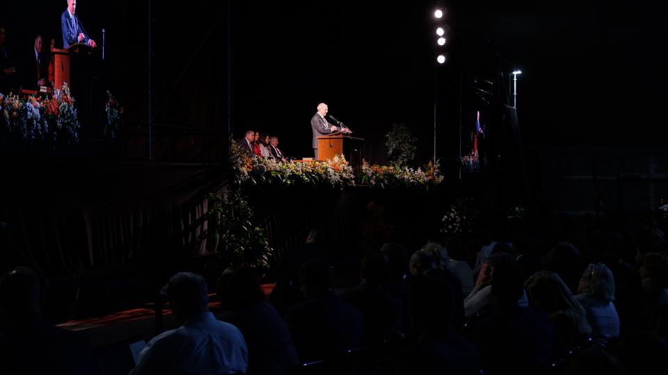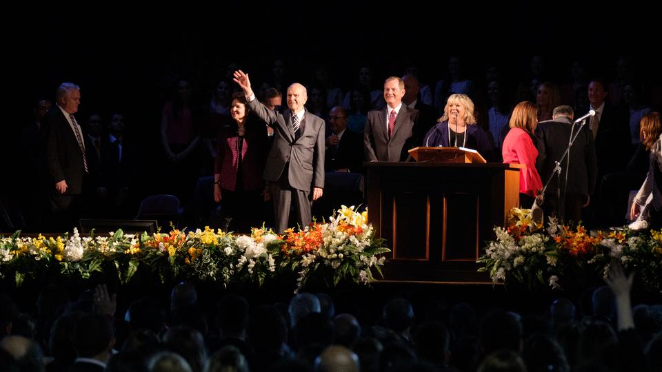 “What a wonderful sight you are,” said President Nelson. “I can hardly believe what I'm seeing — hundreds and hundreds of faithful Latter‑day Saints who have transformed this tent into a chapel.”