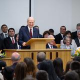 Saturday evening a youth devotional was held at a local stake center, where more than 1,450 young women and men attended and heard counsel from President and Sister Nelson, Elder and Sister Stevenson and Bishop and Sister Caussé. Thousands more participated in area meetinghouses and on the internet.