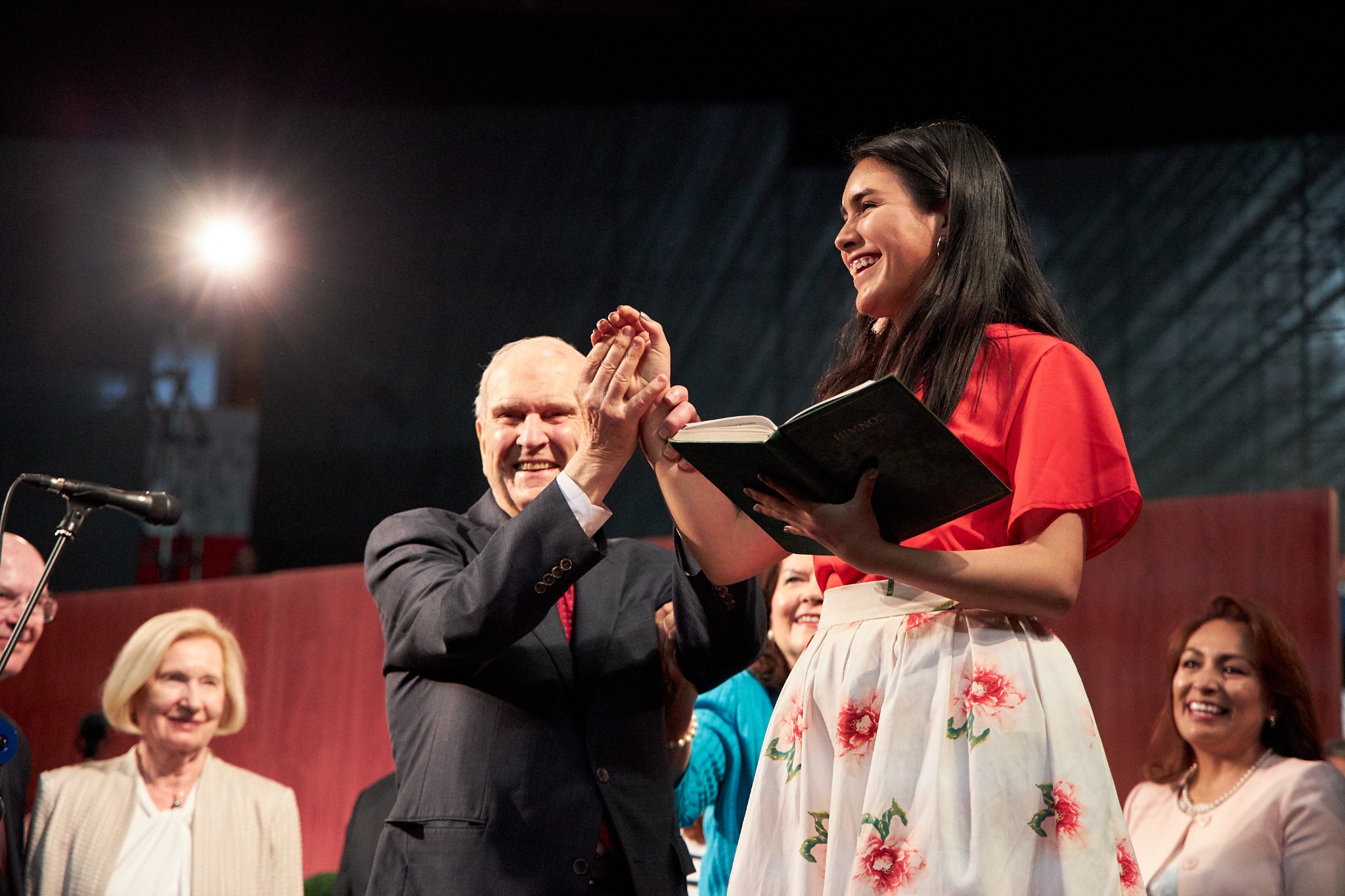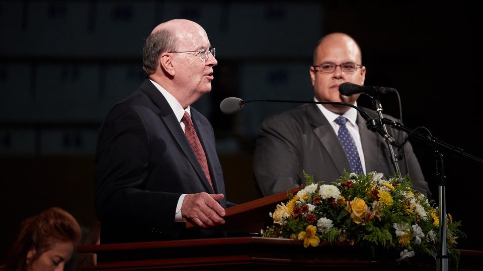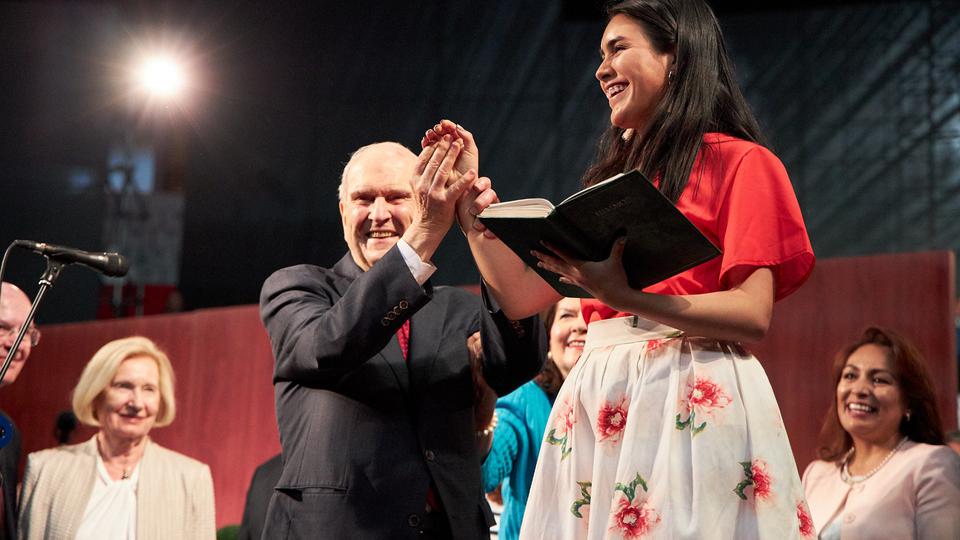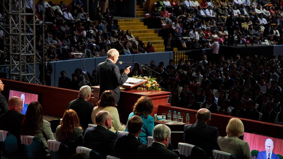 President Russell M. Nelson told Latter-day Saints gathered at General Rumiñahui Coliseum in Quito, a meeting that was broadcast to all Church congregations in Ecuador, that each of them is responsible for developing faith in God and keeping His comandments.