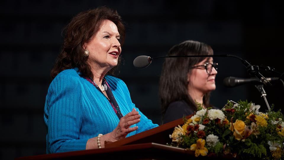 Sister Nelson shared personal experiences with answers to prayers at key times in her life. She then encouraged the gathered Saints to pray daily with deep and serious conviction—and to keep praying until the Lord blesses them.