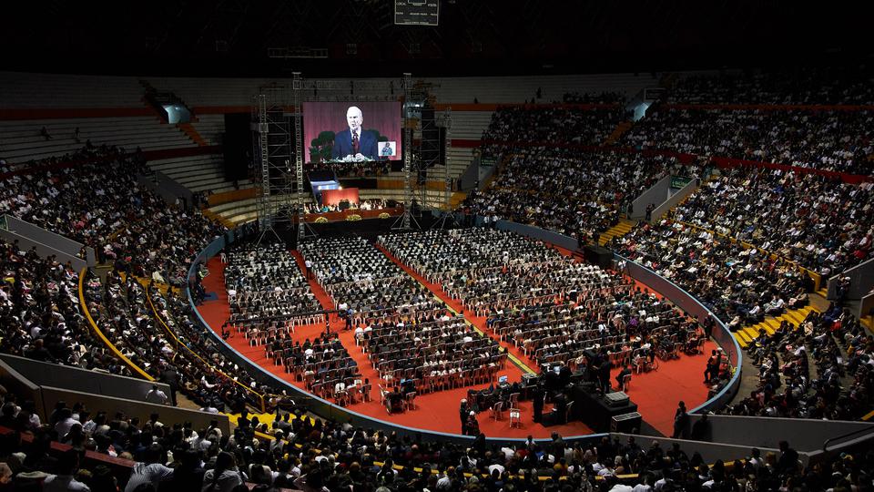 Thousands of Latter-day Saints gathered for an evening devotional in Quito, Ecuador, Monday to hear their prophet remind them of their responsibilities to prepare for a glorious afterlife with their families.