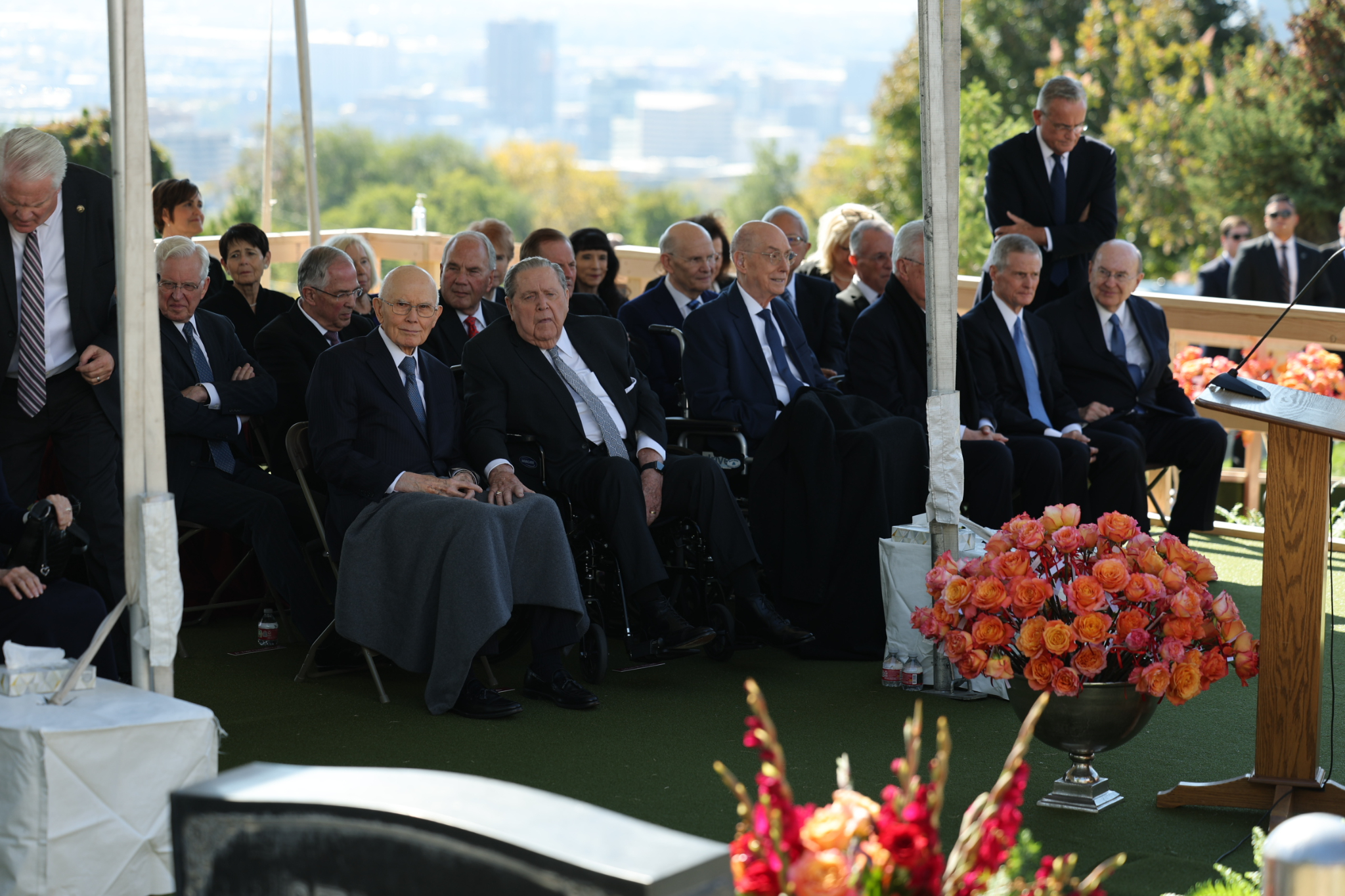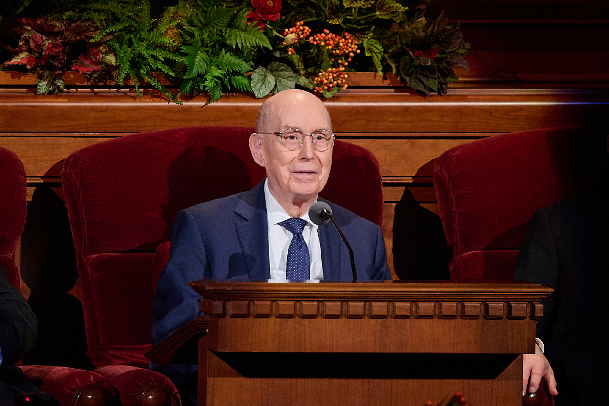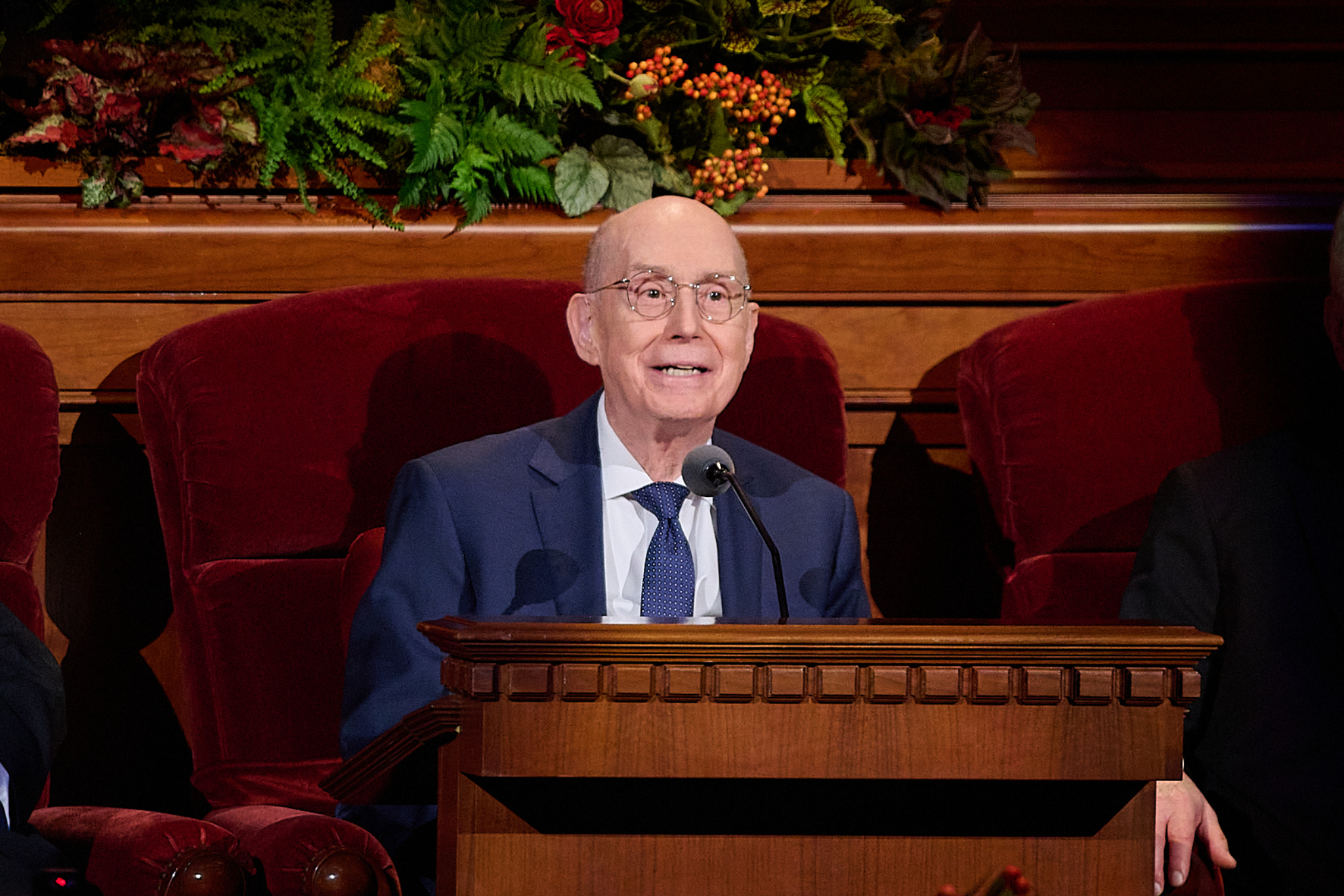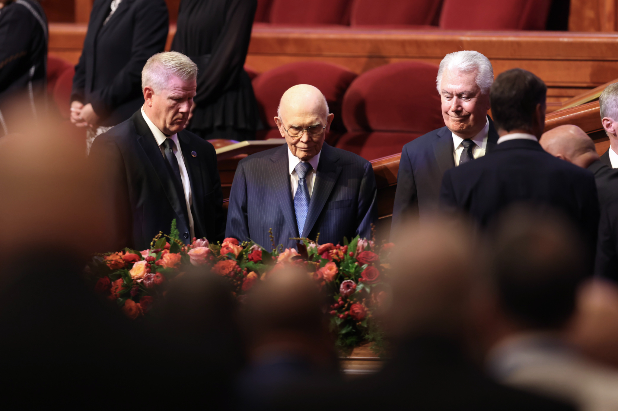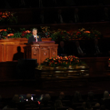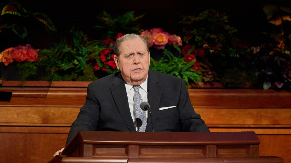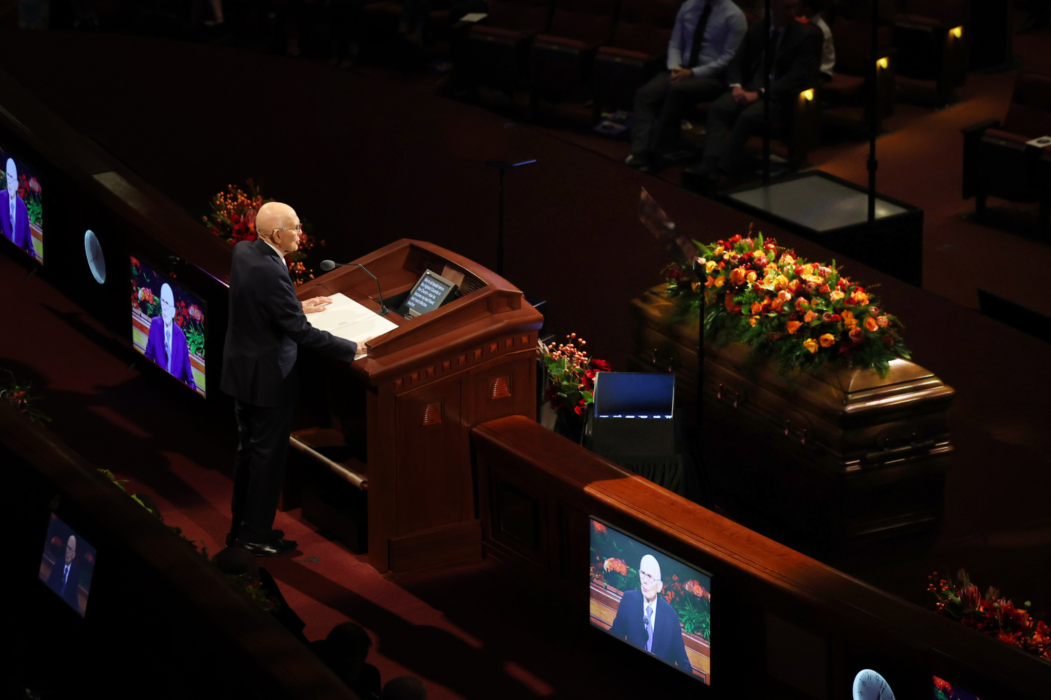 President Oaks and Elder Henry B. Eyring, who served as President Nelson’s counselors, joined two of the prophet’s 10 children — daughter Laurie N. Marsh and son Russell M. Nelson Jr. — and Elder Jeffrey R. Holland of the Quorum of the Twelve Apostles and Relief Society General President Camille N. Johnson to pay tribute to the prophet’s life and teachings. The Tabernacle Choir at Temple Square performed the music, including “Our Prayer to Thee,” which President Nelson wrote.