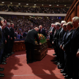Four leaders of The Church of Jesus Christ of Latter-day Saints joined two of the prophet’s children in eulogizing him at his funeral in the Conference Center on Temple Square.