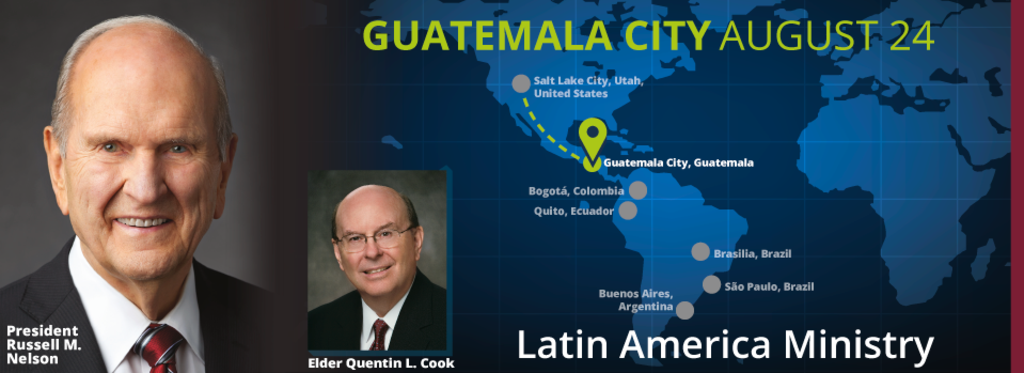 President Nelson’s Latin America ministry runs August 24-September 2, 2019. The senior Church leaders left Salt Lake City Saturday morning for the same-day visit to Guatemala. Other scheduled stops include Colombia, Ecuador, Argentina and Brazil, where other gatherings of Latter-day Saints and friends of the faith, along with outreach meetings with government and religious leaders, will be held.