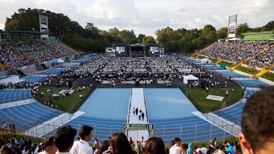 The event was broadcast to congregations throughout Guatemala.