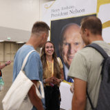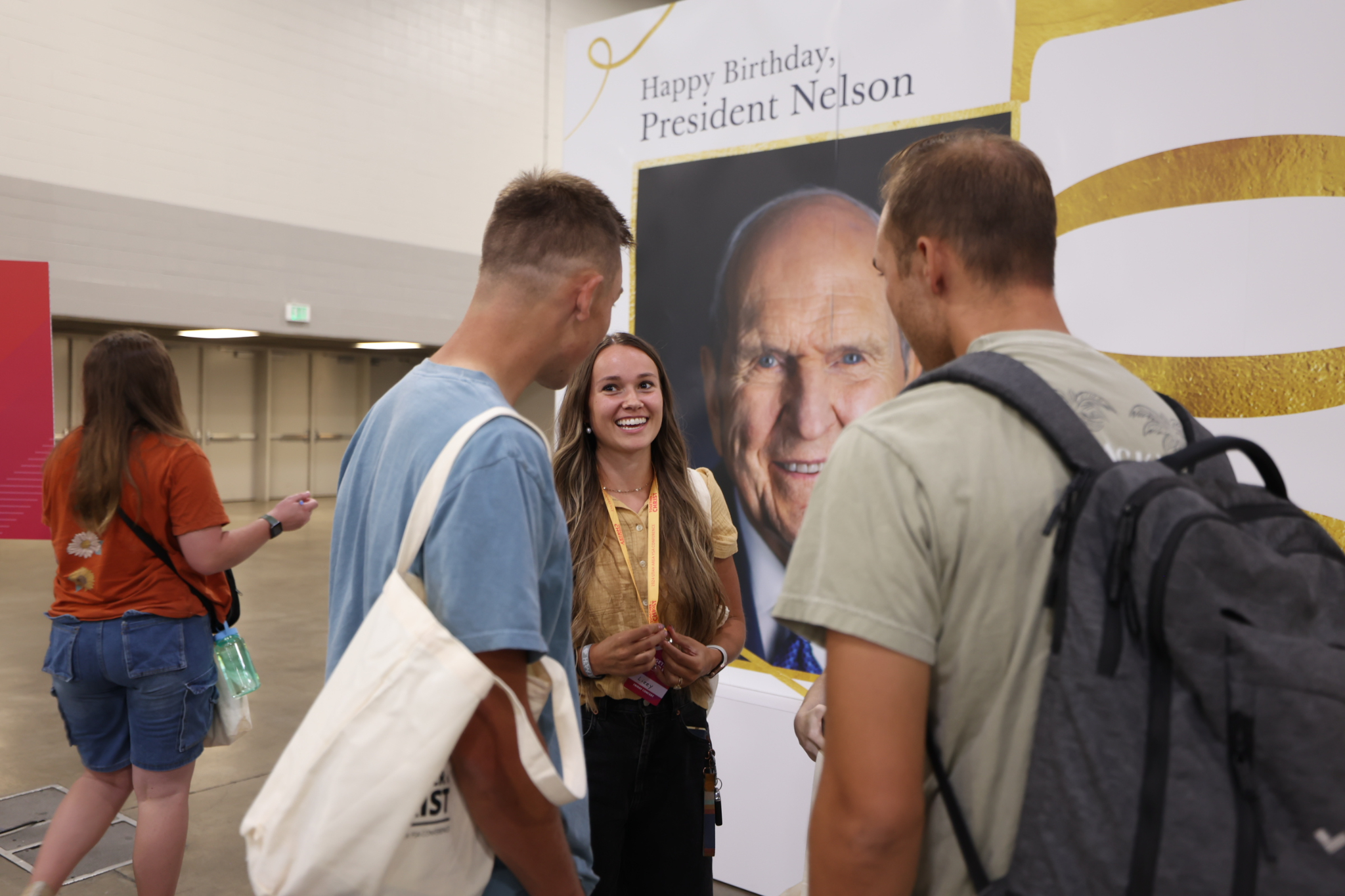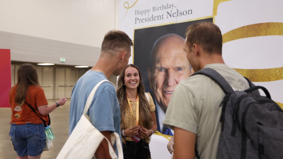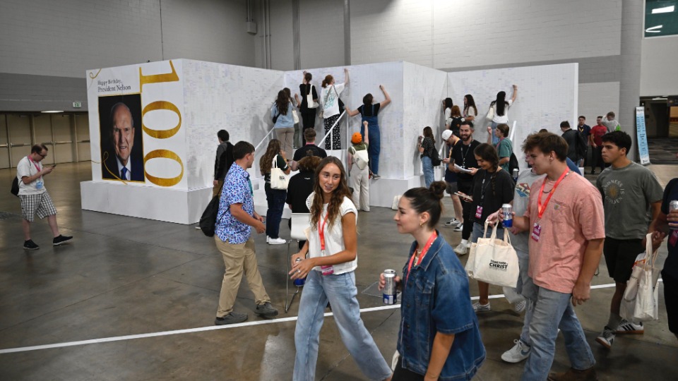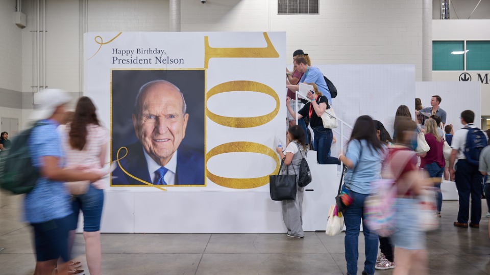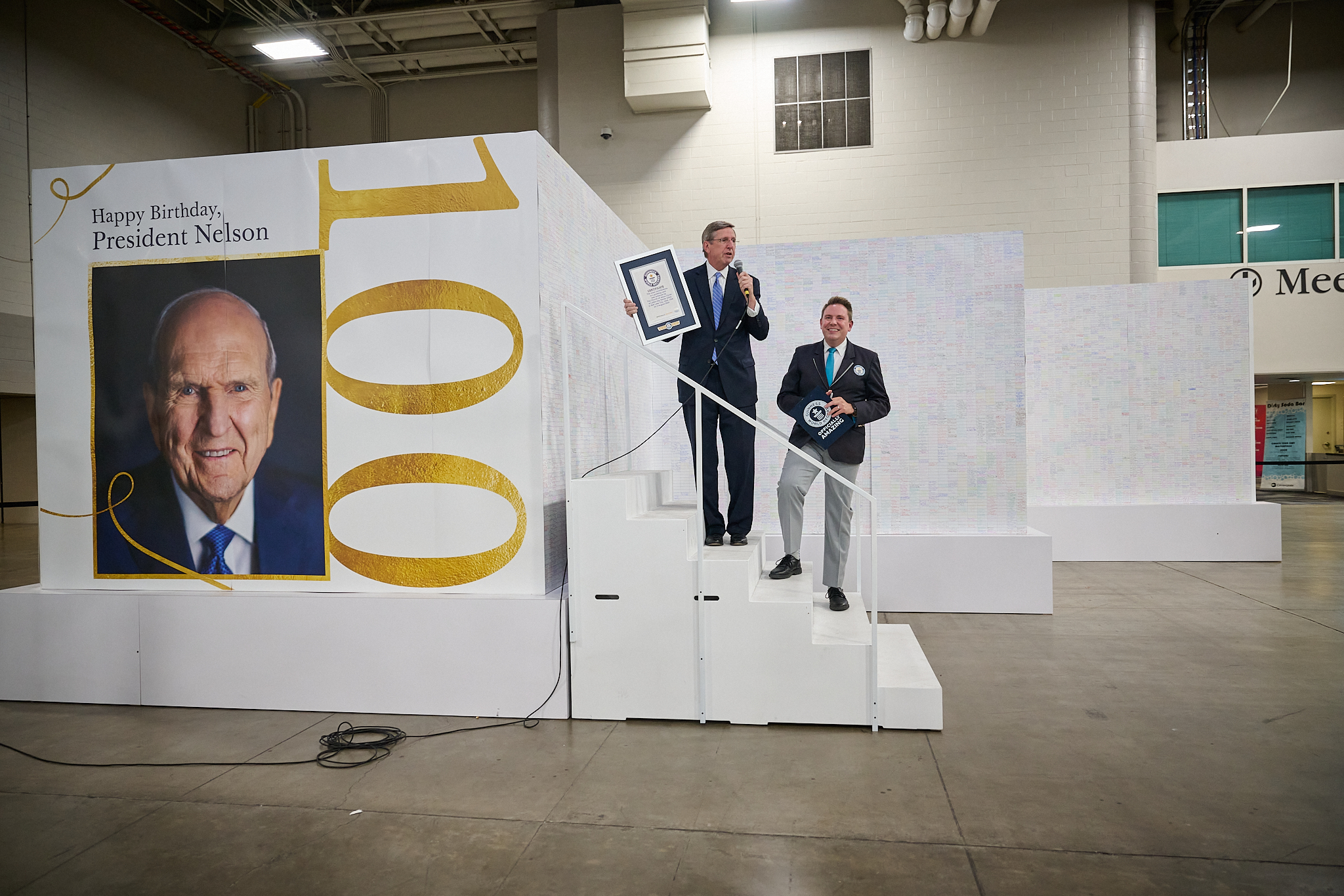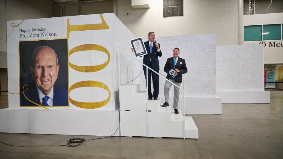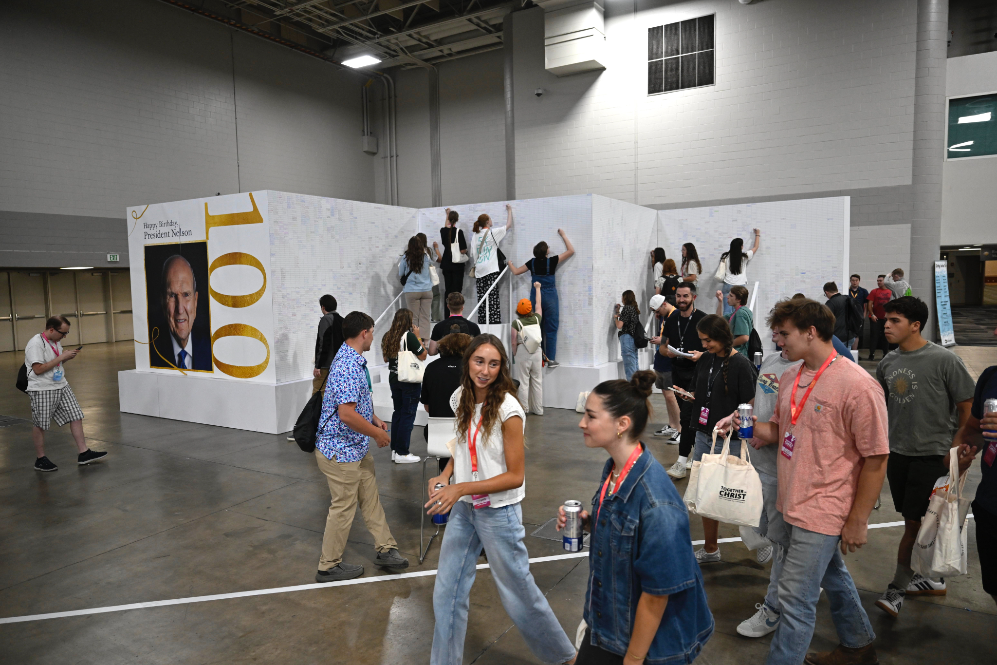 At the Utah Area’s 2024 conference for young single adults in Salt Lake City on Saturday, August 3, 2024, tens of thousands of Latter-day Saints did just that — for him. A total of 31,384 people (now a Guinness World Record) shared messages of love on a massive birthday card for the former heart surgeon who has ministered as an Apostle for more than 40 years. Including additional birthday wishes shared online, some 86,500 people have participated. The card, along with the logbook of contributions, can now be viewed in the lobby of the Conference Center.