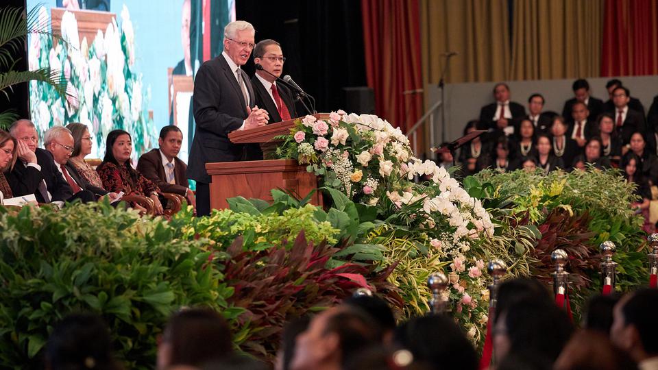 The prophet addressed Latter-day Saints gathered in Jakarta for a devotional at the Ritz-Carlton hotel. The devotional was broadcast to all congregations in the country.