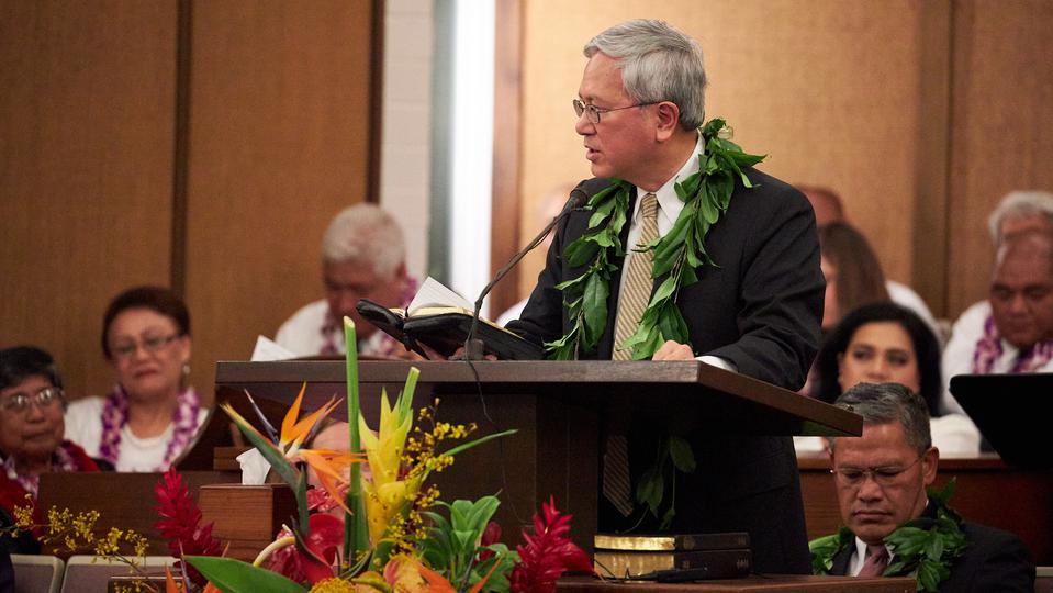 In the devotional at the Kona Hawaii Stake Center, the Nelsons and Gongs noted the importance of living lives of prayer, oneness and focus on the name of Jesus Christ