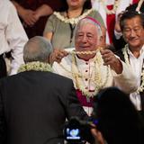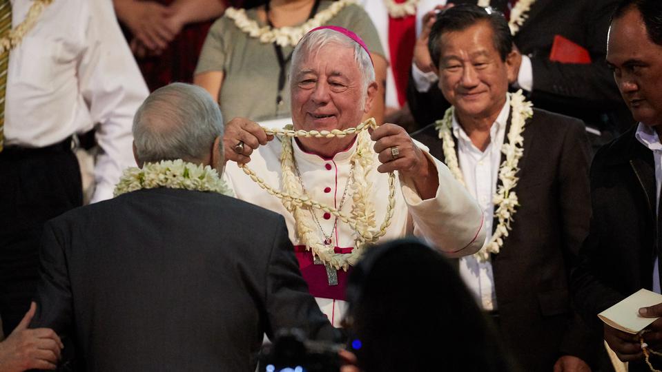 Before leaving for the stadium, the global faith leaders met with other government leaders and dignitaries from the Pacific island, where French is the official language.