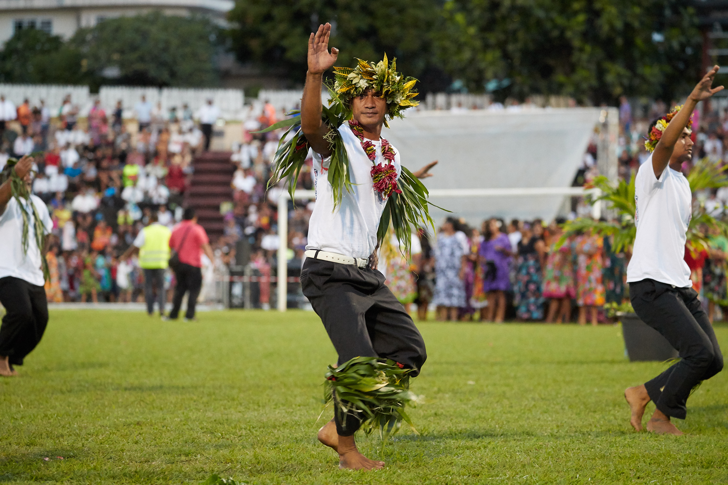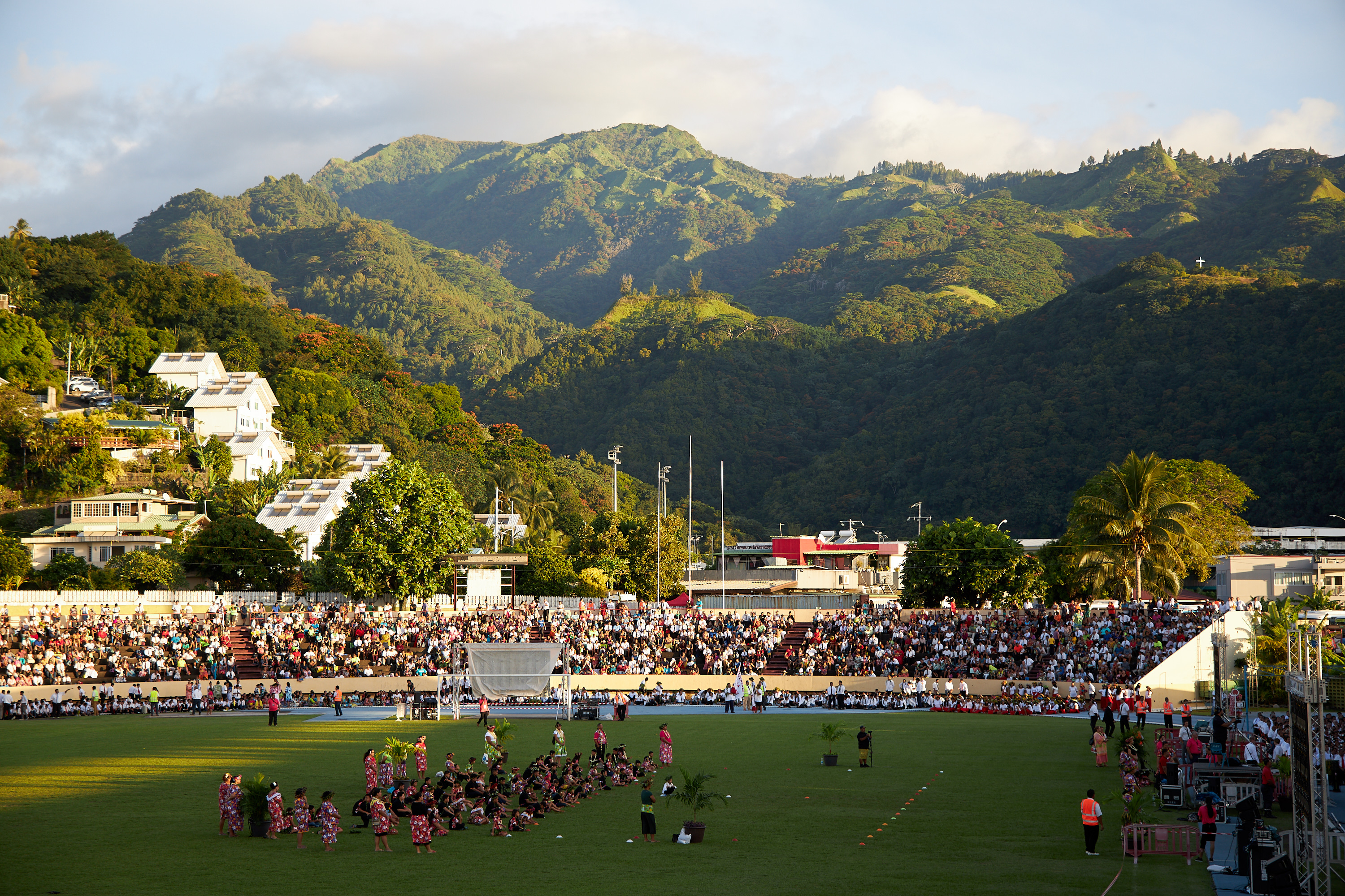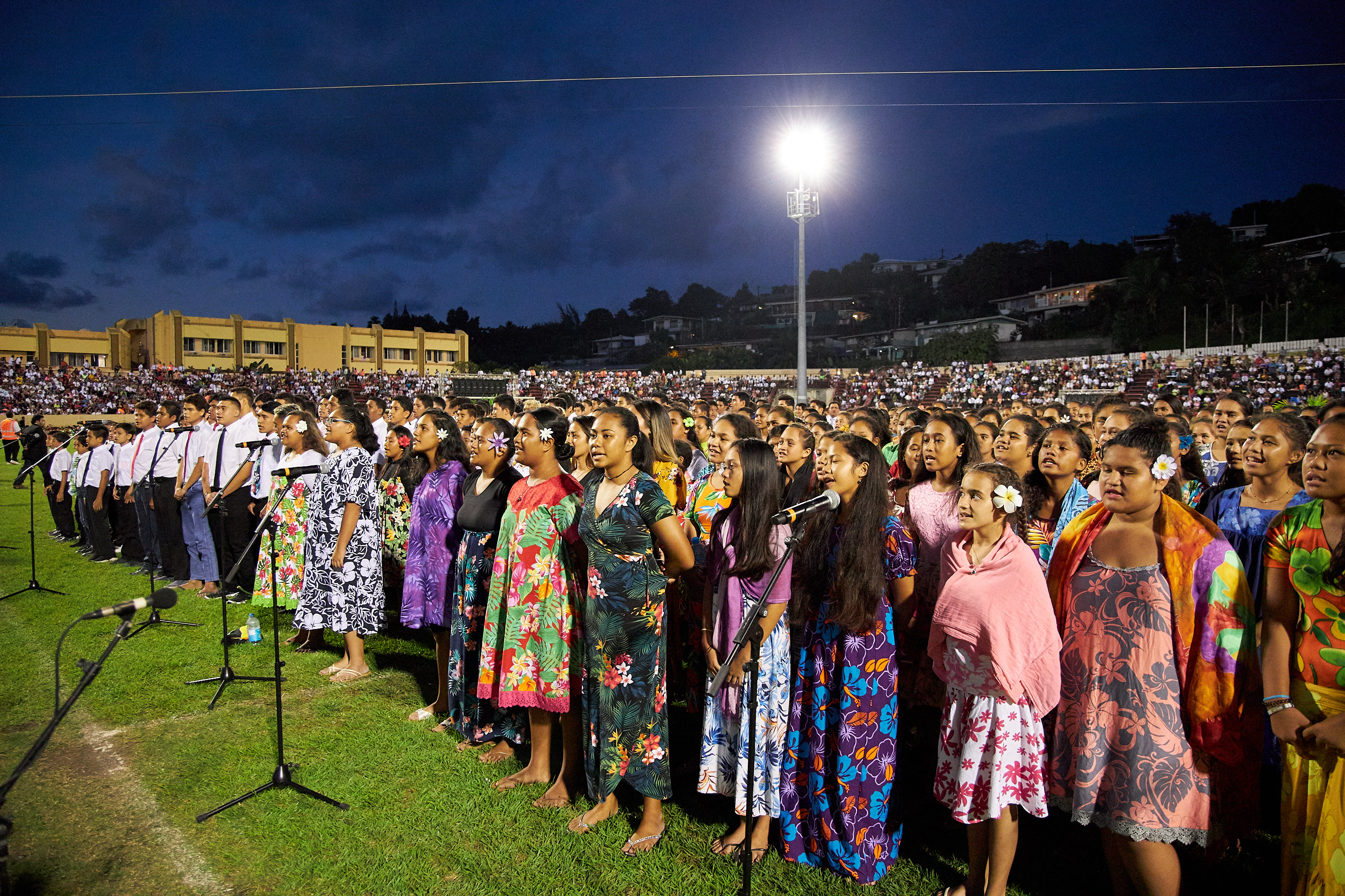 More than 12,000 members and friends of the Church attended the cultural celebration and devotional held afterward in Pater Stadium, which was also broadcast to congregations across Tahiti.