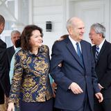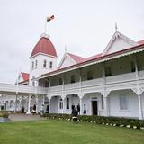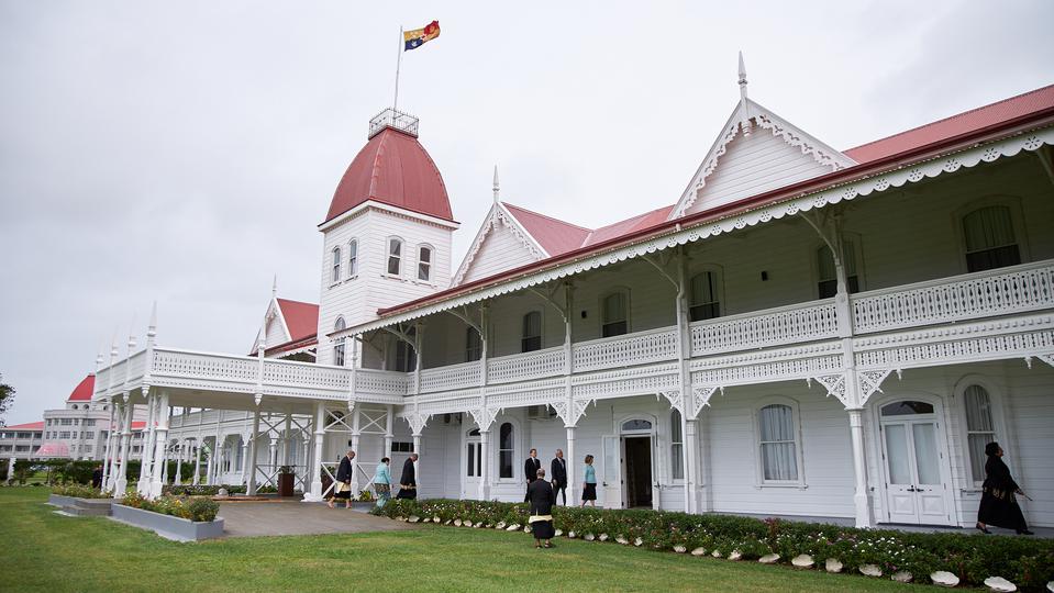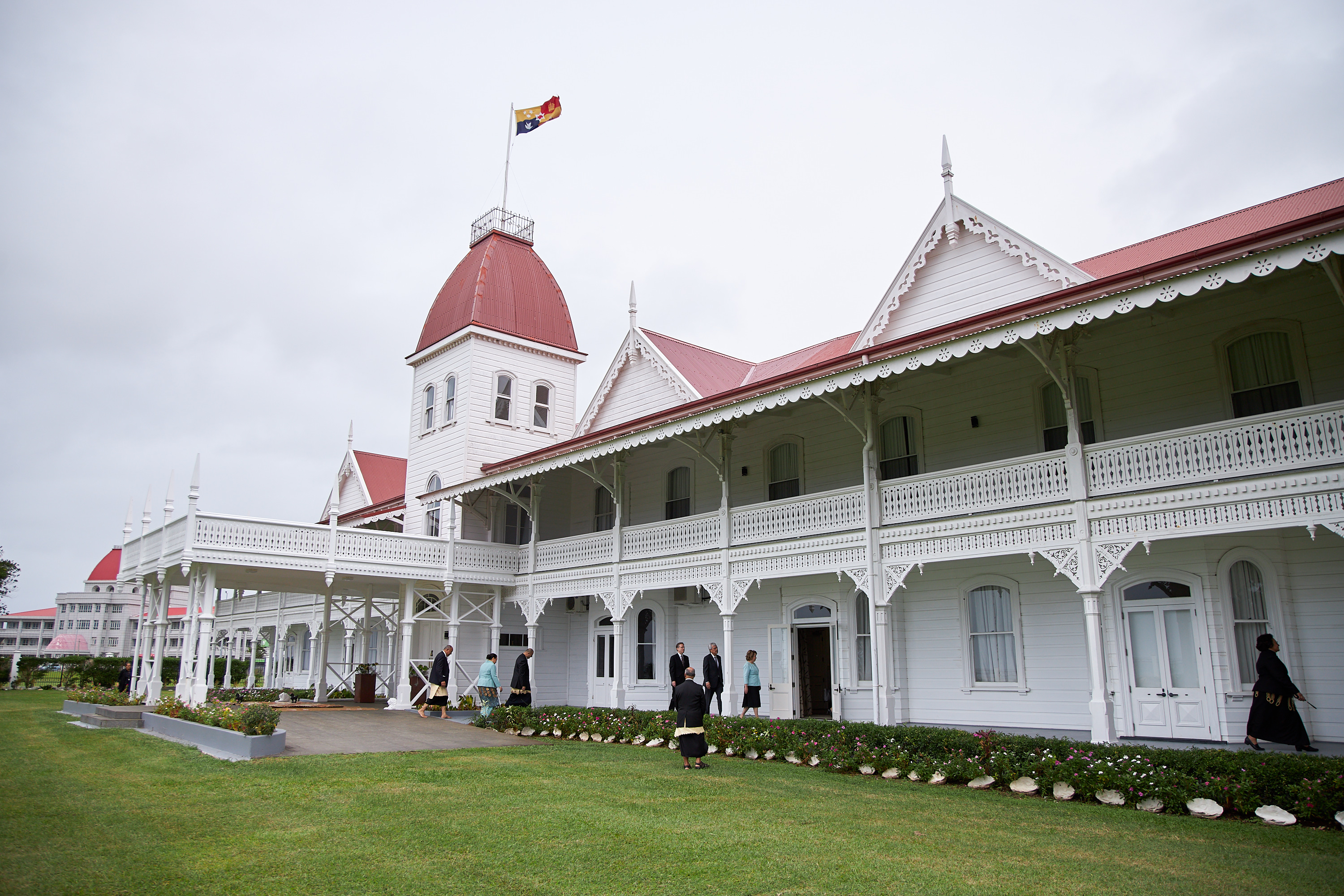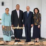 On Thursday afternoon, President Nelson and his wife, Wendy, visited the king and queen of Tonga, His Majesty King Tupou VI and Her Majesty Queen Nanasipau‘u, in the Royal Palace in Nuku‘alofa. Elder Gerrit W. Gong and his wife, Susan, and Elder Vincent O. Haleck and his wife, Peggy, also met with the king and queen. The three Church leaders met with the king while their spouses met with the queen.