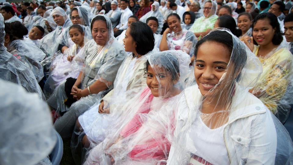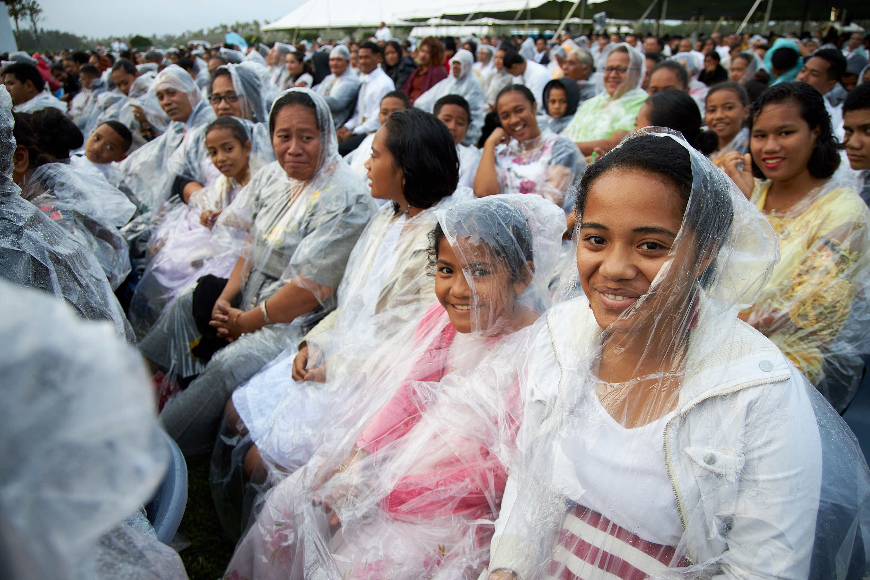At a devotional held on a breezy and rainy Wednesday evening on the Liahona High School sports fields, thousands of Latter-day Saints listened to the Church leaders speak. The meeting was broadcast to more than 150 congregations in Tonga.