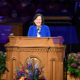 President Porter shared experiences she had with President Nelson over the course of nearly 30 years. Her first encounter came when then-Elder Nelson invited her and her husband, Bruce, to his office a few months before Bruce was called as a General Authority Seventy.