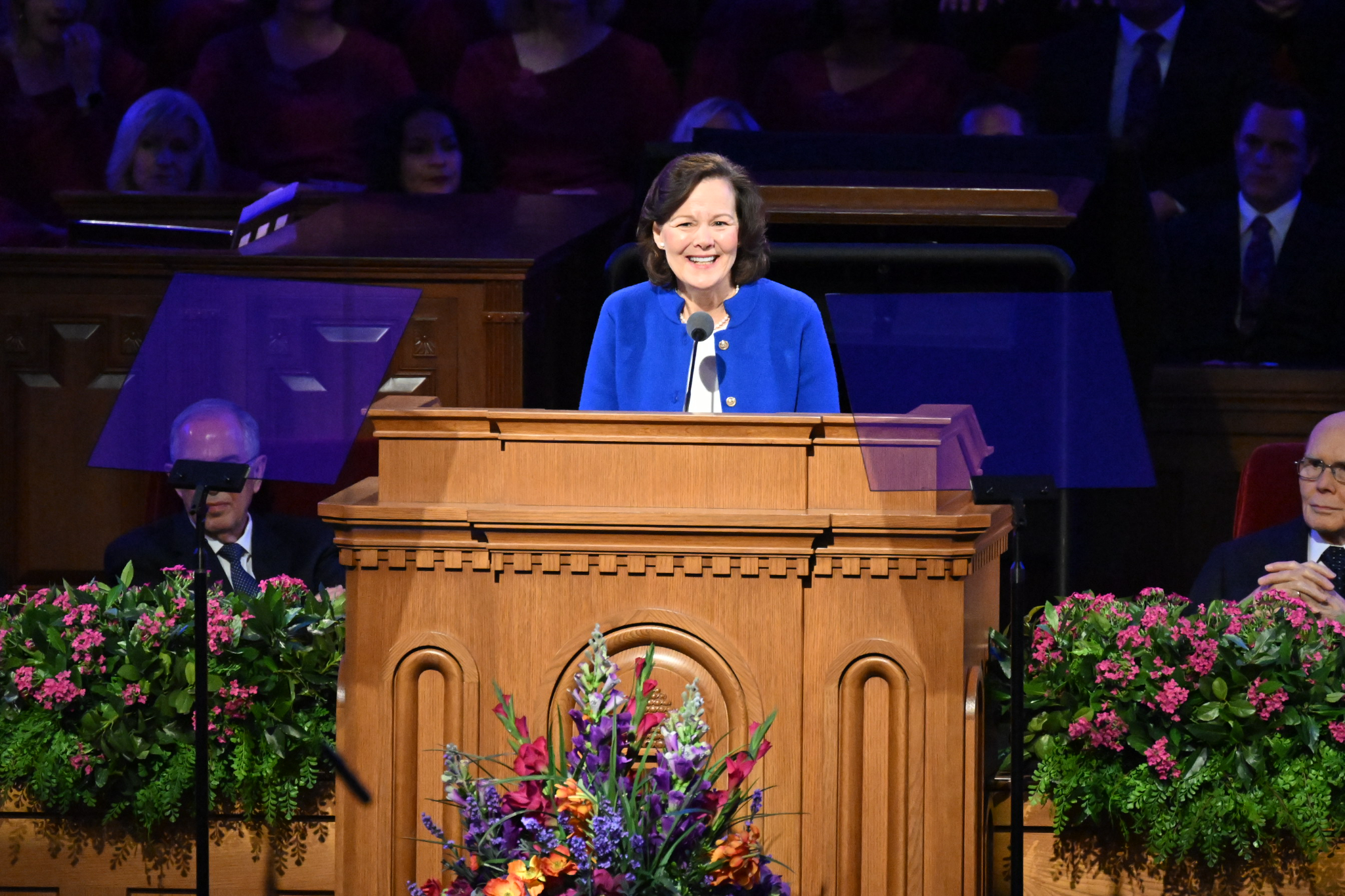 President Dallin H. Oaks of the Quorum of the Twelve Apostles was joined by Primary General President Susan H. Porter, Presiding Bishop Gérald Caussé, Elder Carl B. Cook of the Seventy and Elders Jeffrey R. Holland and Henry B. Eyring of the Quorum of the Twelve Apostles.