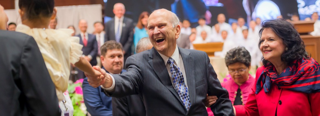 President Russell M. Nelson, his wife, Wendy, and Elder Gary E. Stevenson of the Quorum of the Twelve Apostles, greet Latter-day Saints in Peru for an evening devotional October 20, 2018.2018 by Intellectual Reserve, Inc. All rights reserved.Sometimes President Nelson, who is conversant in 11 languages, spoke to people in their own tongue. During ministry visits to several Latin American countries in October 2018, the polyglot prophet gave significant portions of his sermons in Spanish. In Peru, for example, he delivered introductory remarks in English. Then he transitioned, saying, “With your permission, I would like to address you in Spanish.”