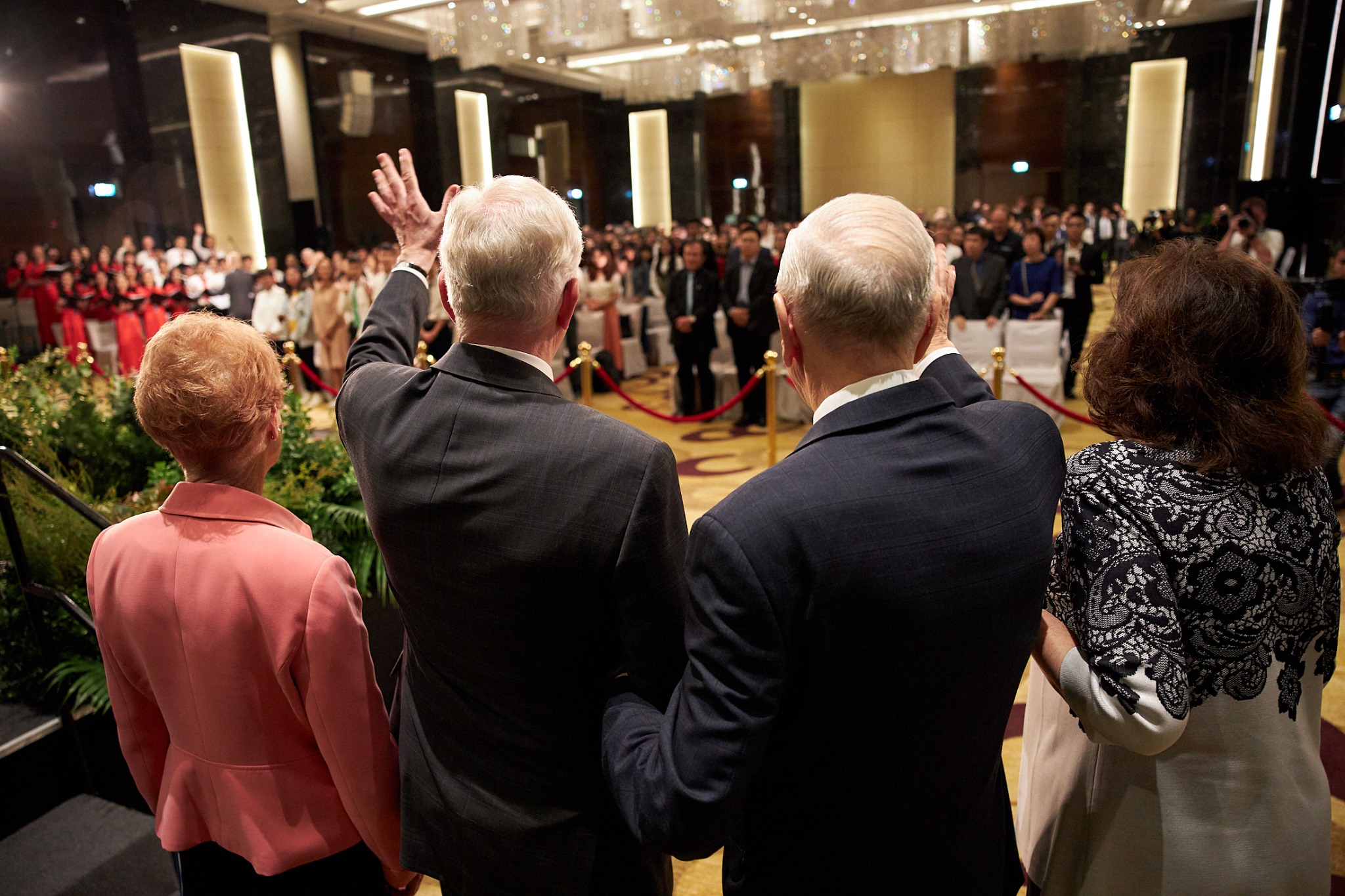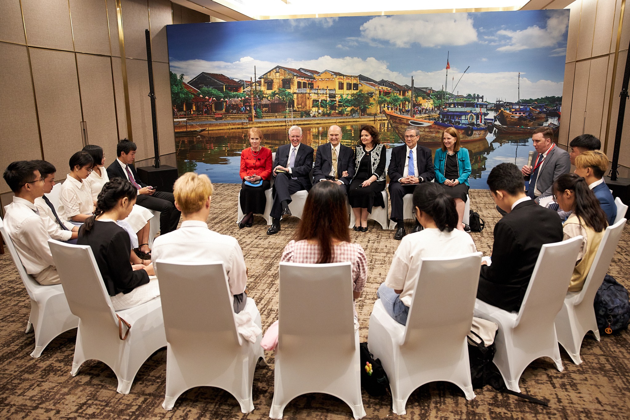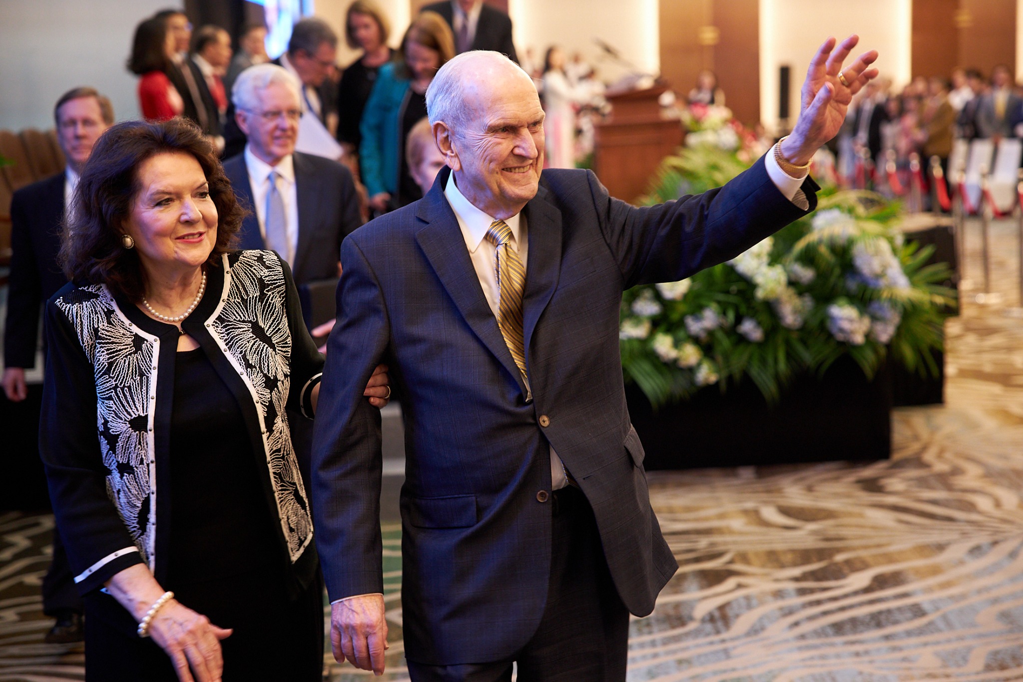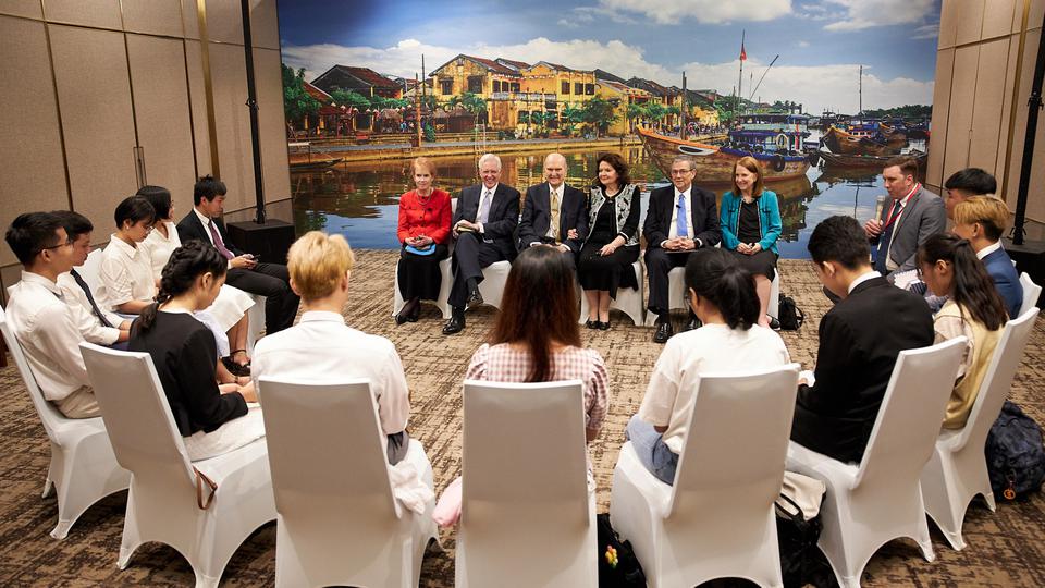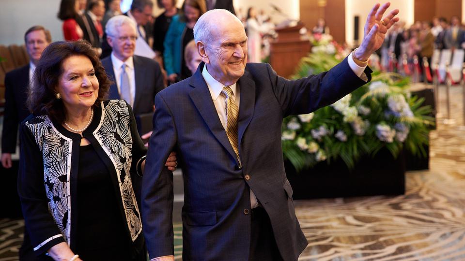 Sister Wendy Nelson and Elder D. Todd Christofferson of the Quorum of the Twelve Apostles and his wife, Kathy, are with President Nelson on this seven-day trip to four southeast Asia countries. Each spoke at the Sunday and Monday evening devotionals.