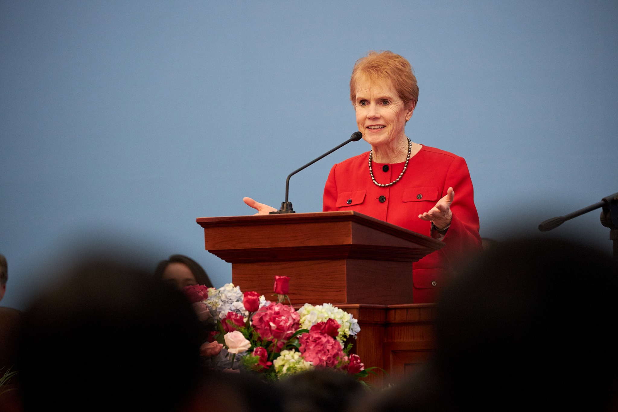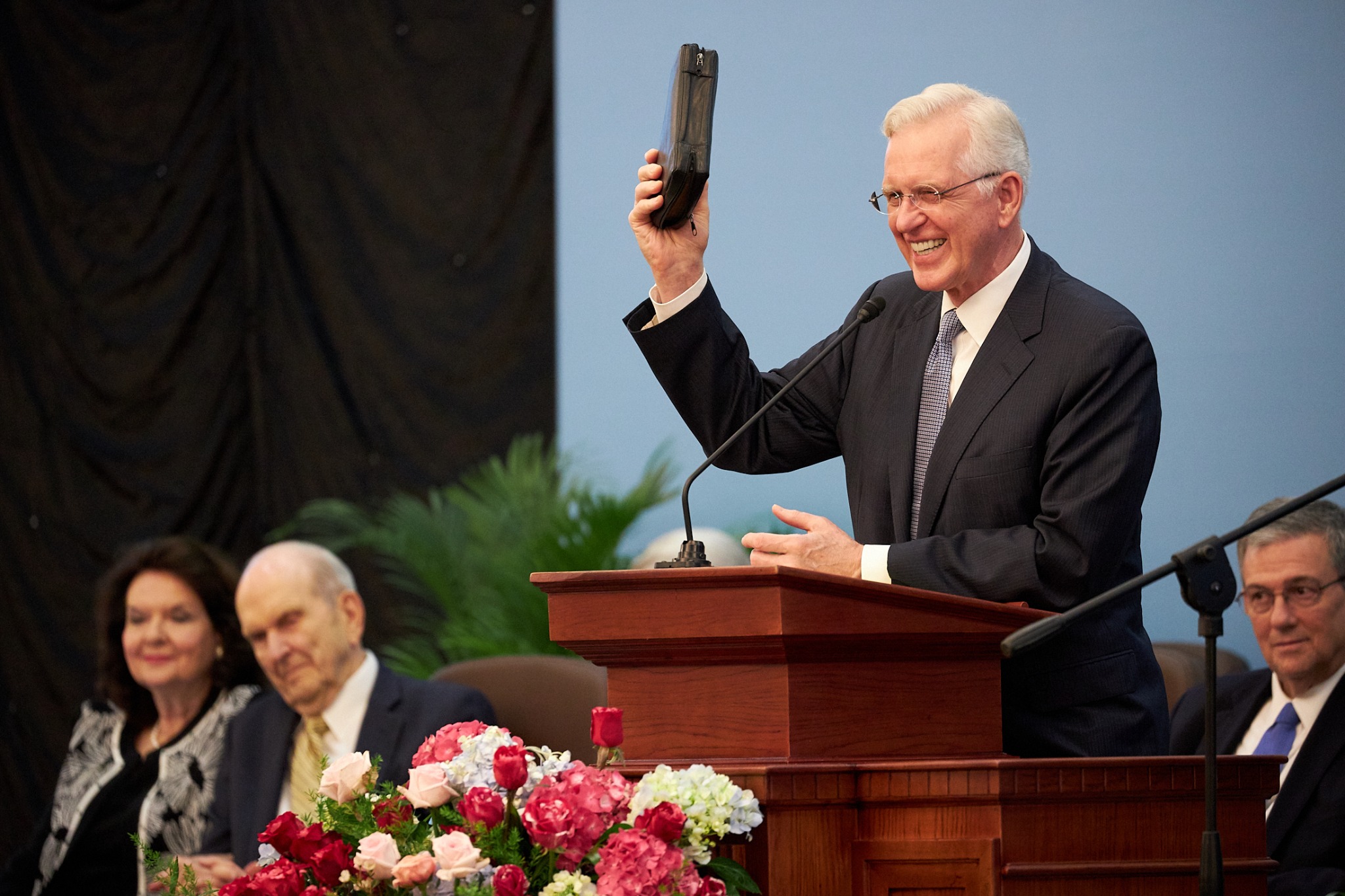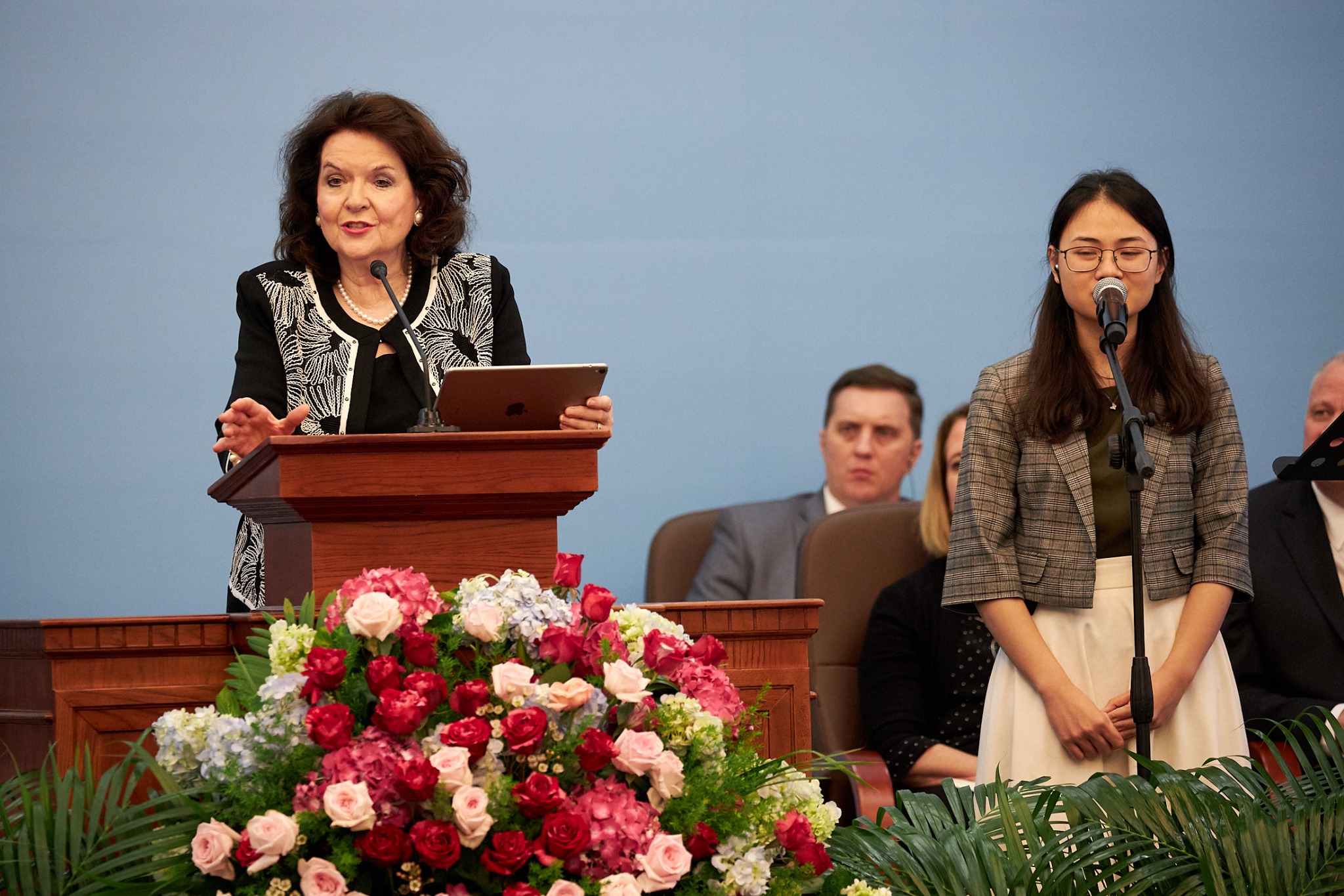 Sister Wendy Nelson and Elder D. Todd Christofferson of the Quorum of the Twelve Apostles and his wife, Kathy, are with President Nelson on this seven-day trip to four southeast Asia countries. Each spoke at the Sunday and Monday evening devotionals.